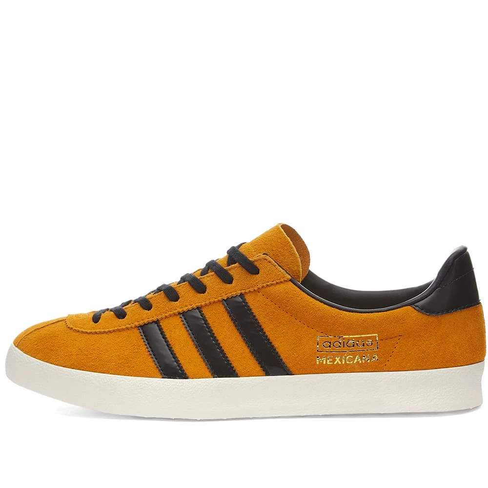 Oozing with old-school style, these black, white and gold adidas Originals Mexicana’s are loaded with retro appeal. Crafted from smooth suede, the sleek design is supported – as usual – by a bouncy rubber outsole and the signature three stripes are found adorning the sidewall. A shimmering gold Mexicana logo is then stamped at the heel, paying homage to when Mexico held the 1970 world cup.