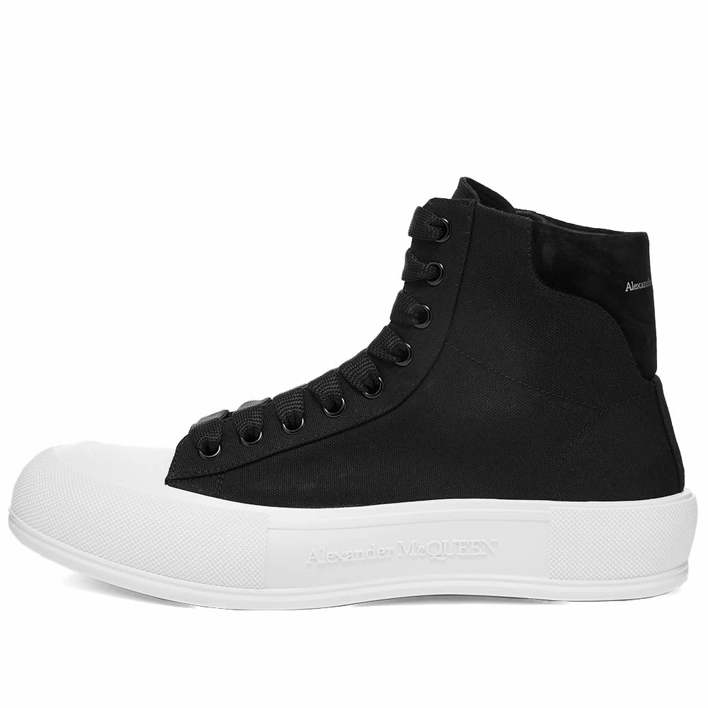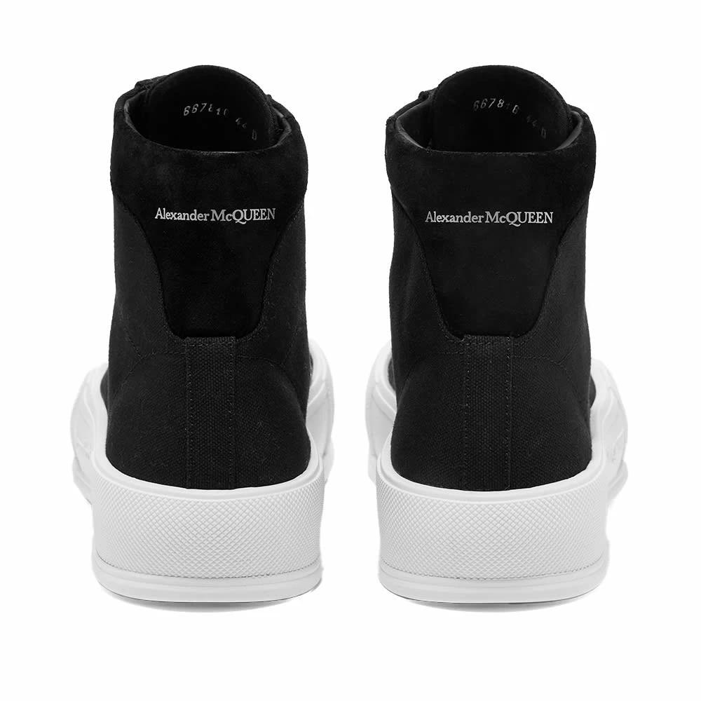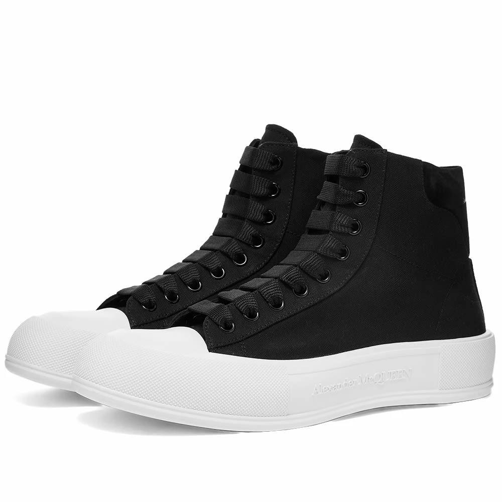 Alexander McQueen looks to footwear classics to inspire these high-top sneakers. The uppers are cut from black canvas and styled like all those basketball favourite we know and love, then joined to a chunky, white rubber sole to further the look.