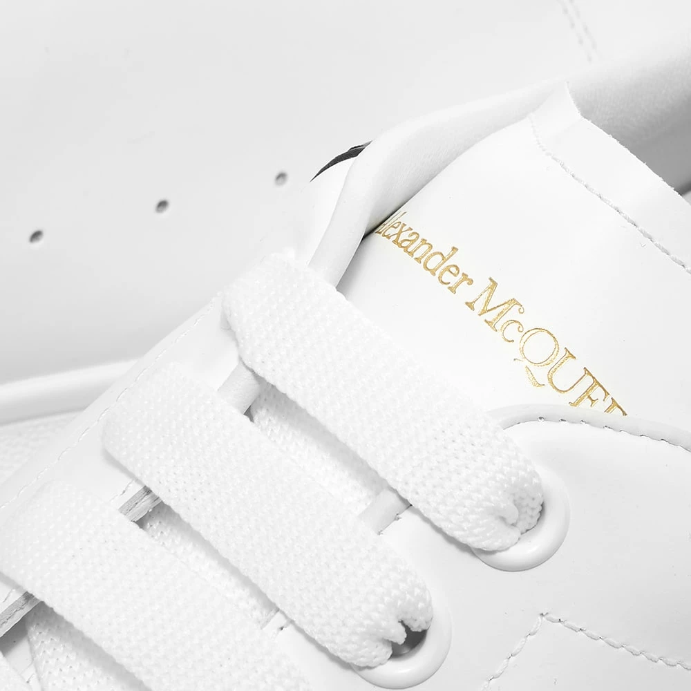 Alexander McQueen’s wedge sole sneaker represents a fusion of high-end minimalism and chunky styling, and this version is a prime example. Its uppers take on a low-key, crisp white colour – for the most part, at least – with a contrasting black heel panel and gold-tone branding giving subtle accents. Underneath, it’s fitted, as always, with a platform rubber sole to give that signature elevated aesthetic.