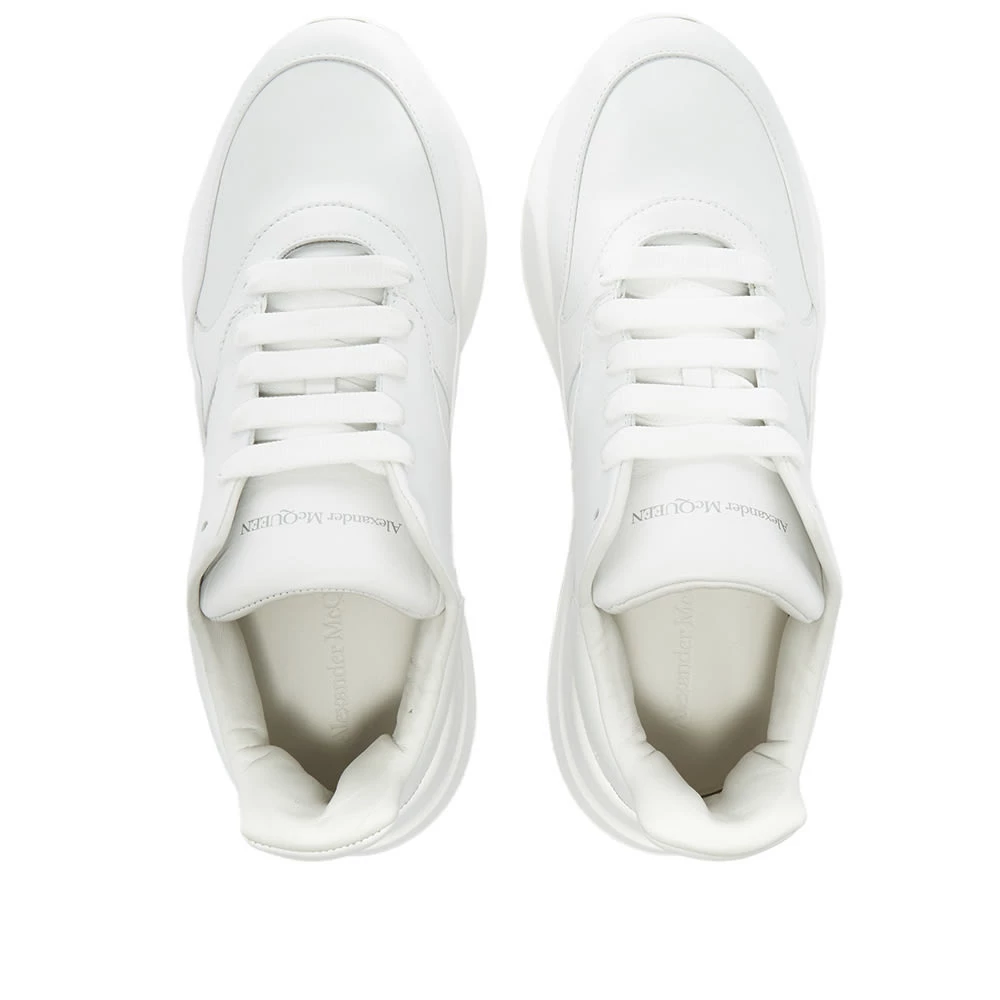 Offering a fresh take on its iconic oversized runner, Alexander McQueen presents this top-to-toe white rendition. These echo the label’s sleek and sophisticated aesthetic, with clean panelling and exaggerated cuff shaping. Their luxury leather upper is subtly styled with branding at the tongue and heel panel for a signature finish.
