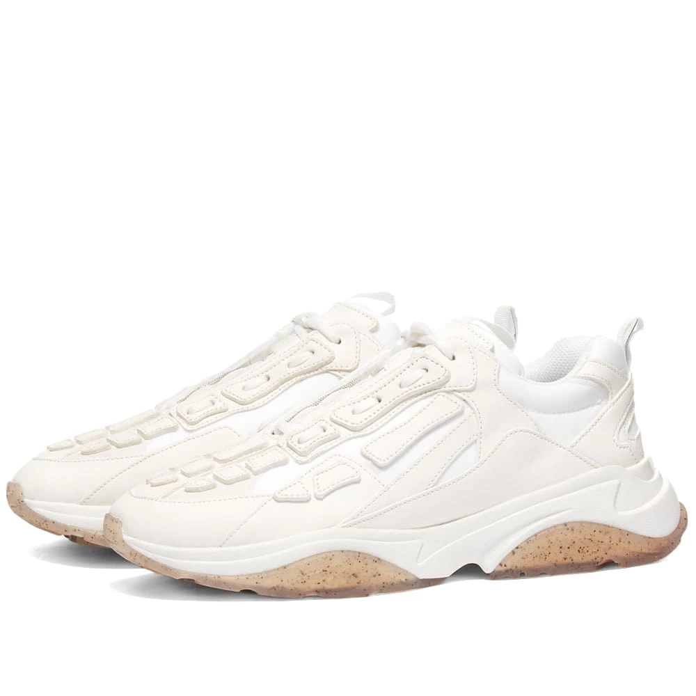 The Bone Runner has become one of AMIRI’s most coveted sneakers, loved for its vintage look and grungy skeleton-like overlays. Made from a combination of fabric and leather, they feature a sleek cream colourway and sit atop a pebbled chunky rubber sole.