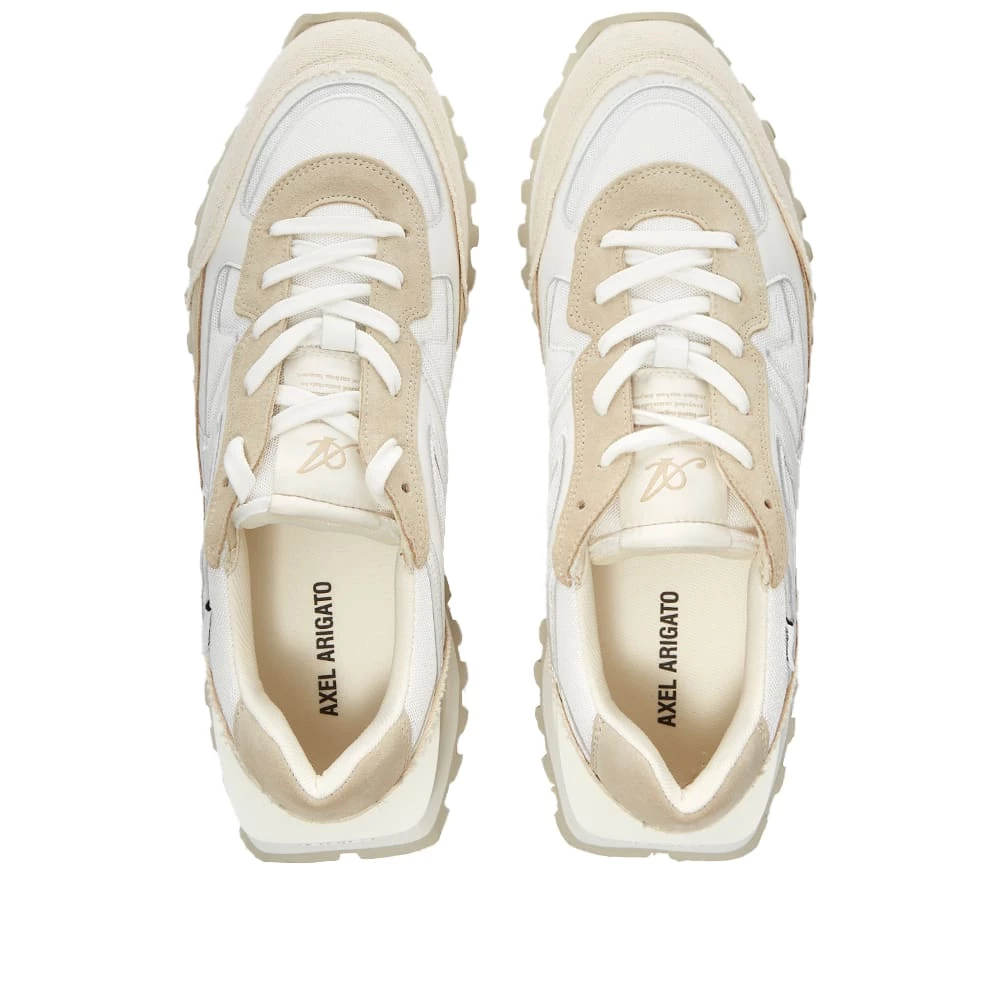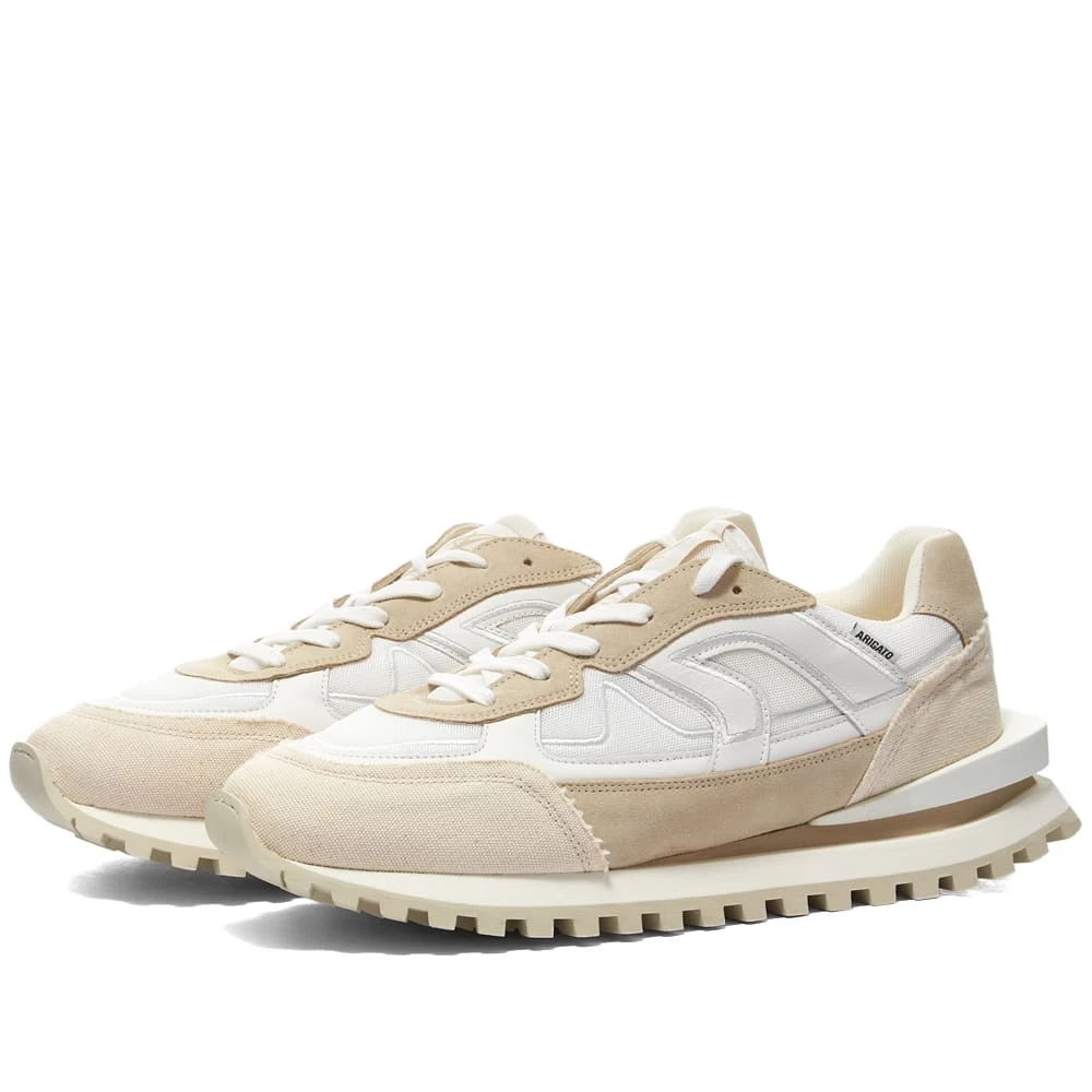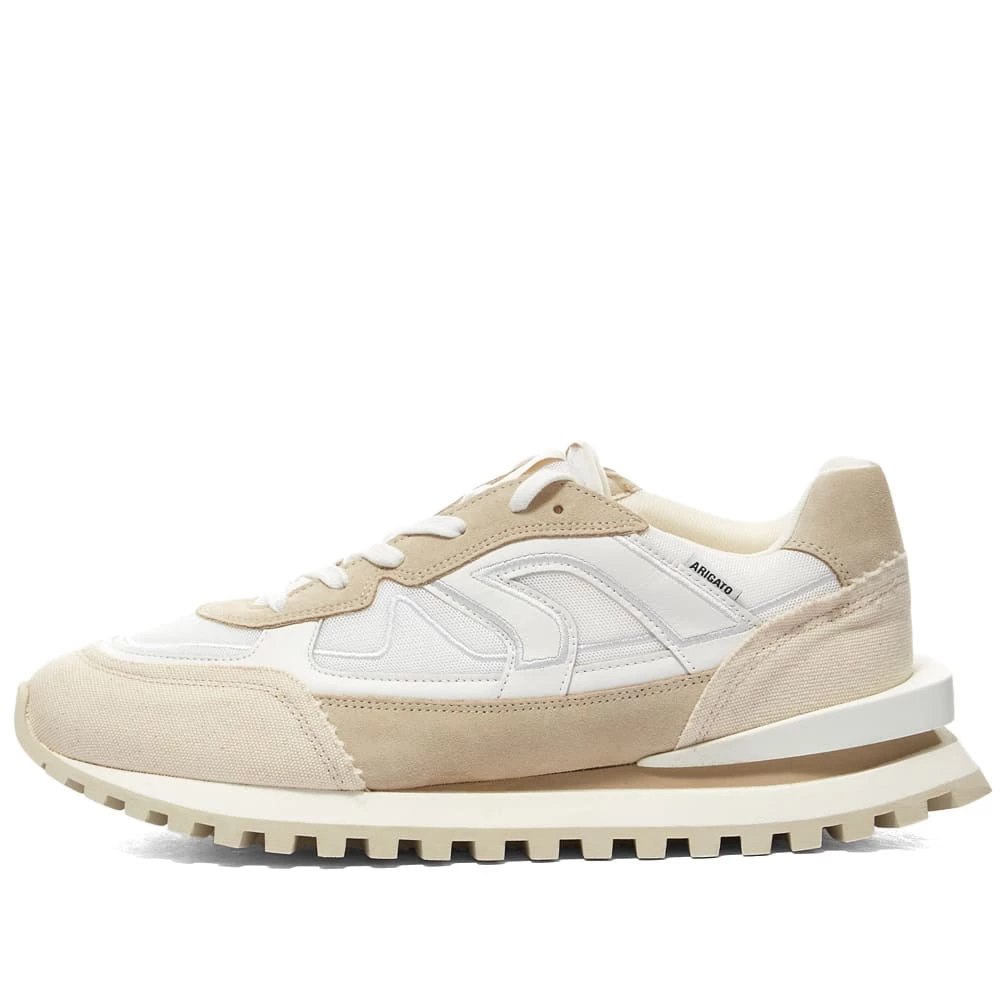 Axel Arigato offers the Sonar sneaker – a ‘70s-inspired runner with enough edge for the modern wearer. A layered style, the white mesh uppers are overlaid with hits of beige while underfoot the chunky serrated sole has a contrasting spoiler to complete the look.
