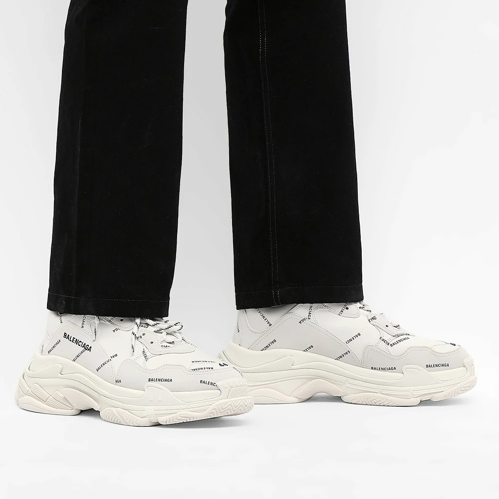 Since 2017, Balenciaga’s Triple S sneaker has made waves in both the streetwear and high fashion scene, famed for its chunky, futuristic look and premium build. This pair gets a logo-heavy rework to boot, with black, block letter branding featuring all-over the bright white leather uppers. The soles are coloured in tonal white, too, but still retain that stacked, head-turning look we all know and love.