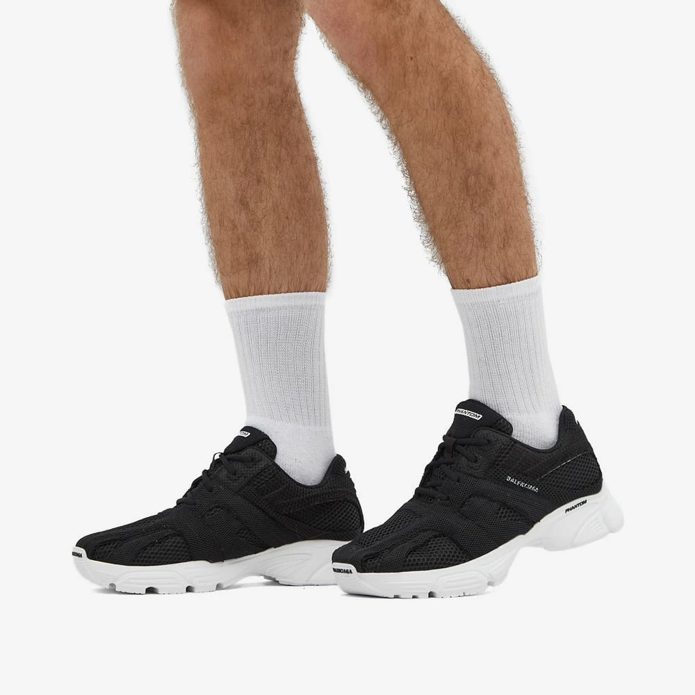 Taking inspiration from a classic running shoe, these Balenciaga Phantom sneakers are coloured in black and white, promising a sleek and classic look. They show off mesh uppers which are set atop a chunky rubber sole for a contemporary touch.