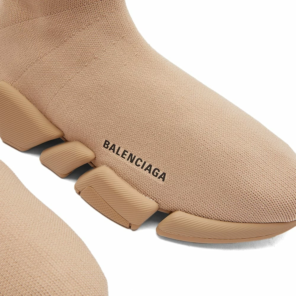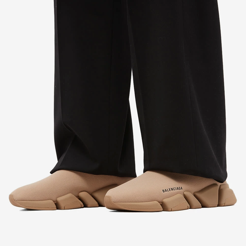 Balenciaga continues its tradition of experimentation in footwear, dramatically thick soles, reimagined classics and a distressed edge. The Speed 2.0 runner is the classic Balenciaga “sock” upper with a geometric rubber sole that’s given a distressed look. The brand’s logo is printed around the back of the sole in a spray paint style as part of the Graffiti collection.
