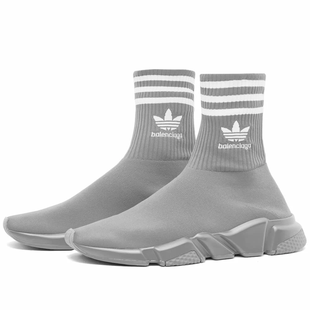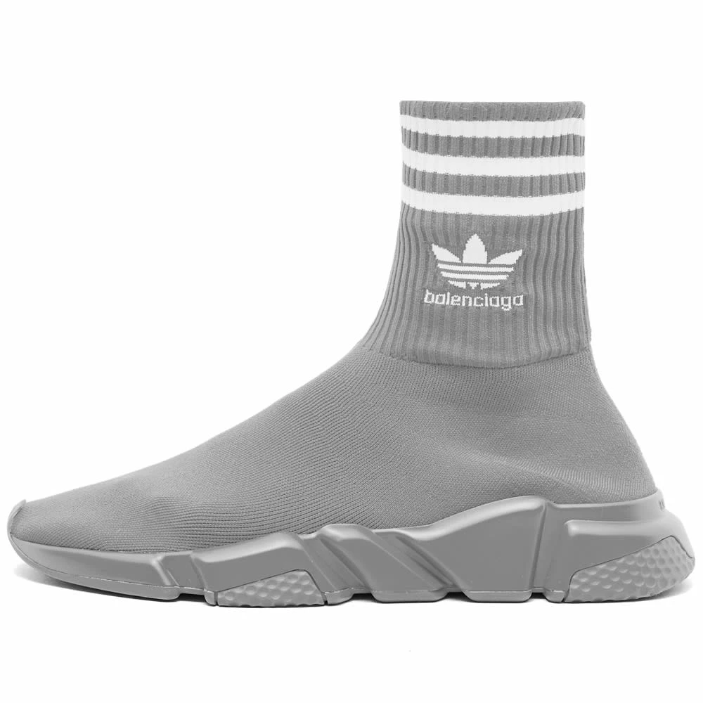 For its SPEED LT sneakers, Balenciaga takes inspiration from adidas’ archival sportswear and retro aesthetics. The signature sock-like uppers feature adidas’ iconic ‘3-Stripes’ motif, above a custom co-branded logo. This minimalist design sits on a moulded, chunky rubber sole for a minimalist silhouette.