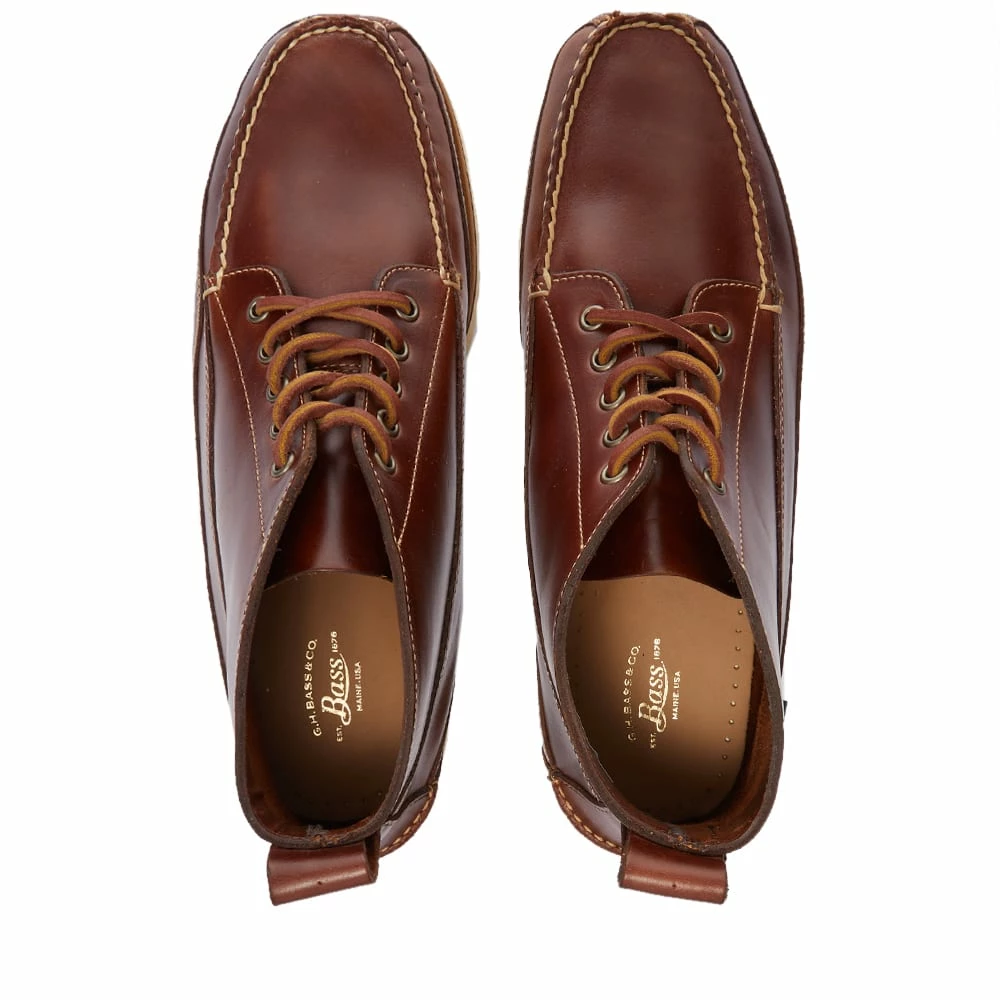 Smarten up your outdoor looks with the Camp Moc III Ranger boots from G.H. Bass. The brown grained leather uppers are accented with contrast stitching and antique brass eyelets, while underfoot the chunky EVA wedge sole ensures comfort and a modern finish.