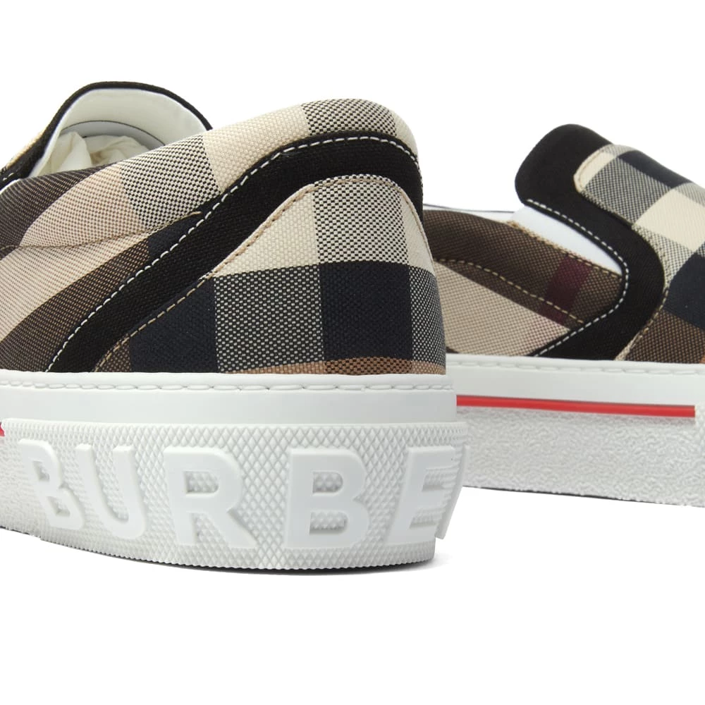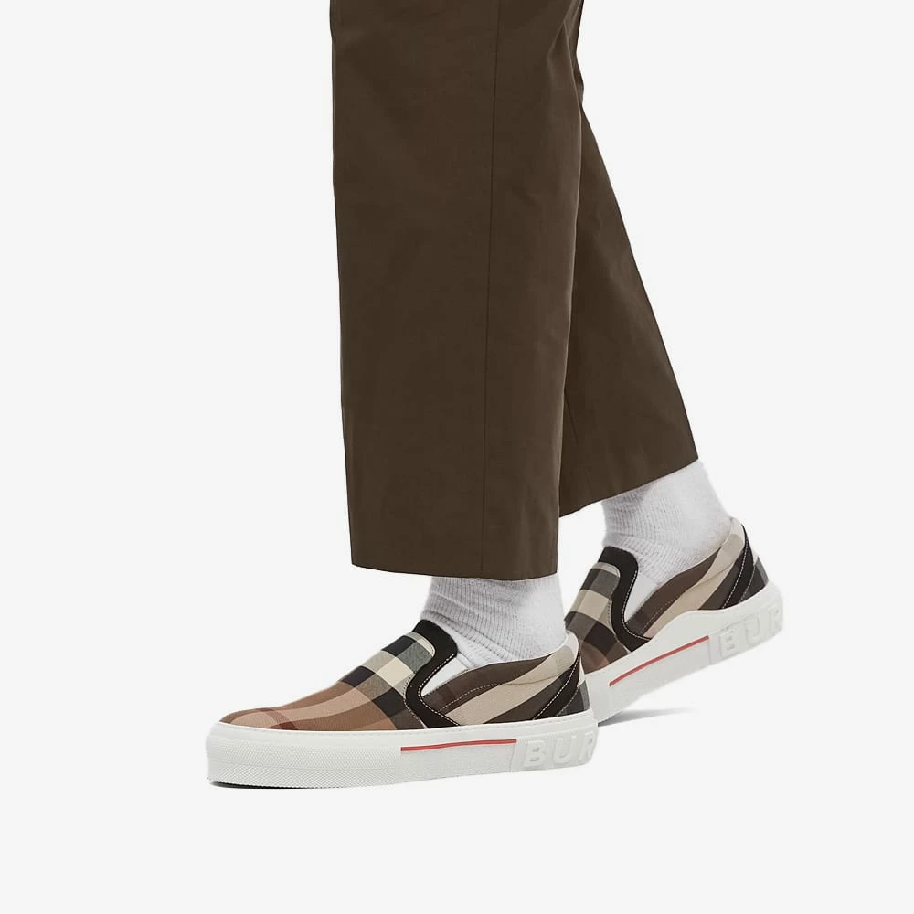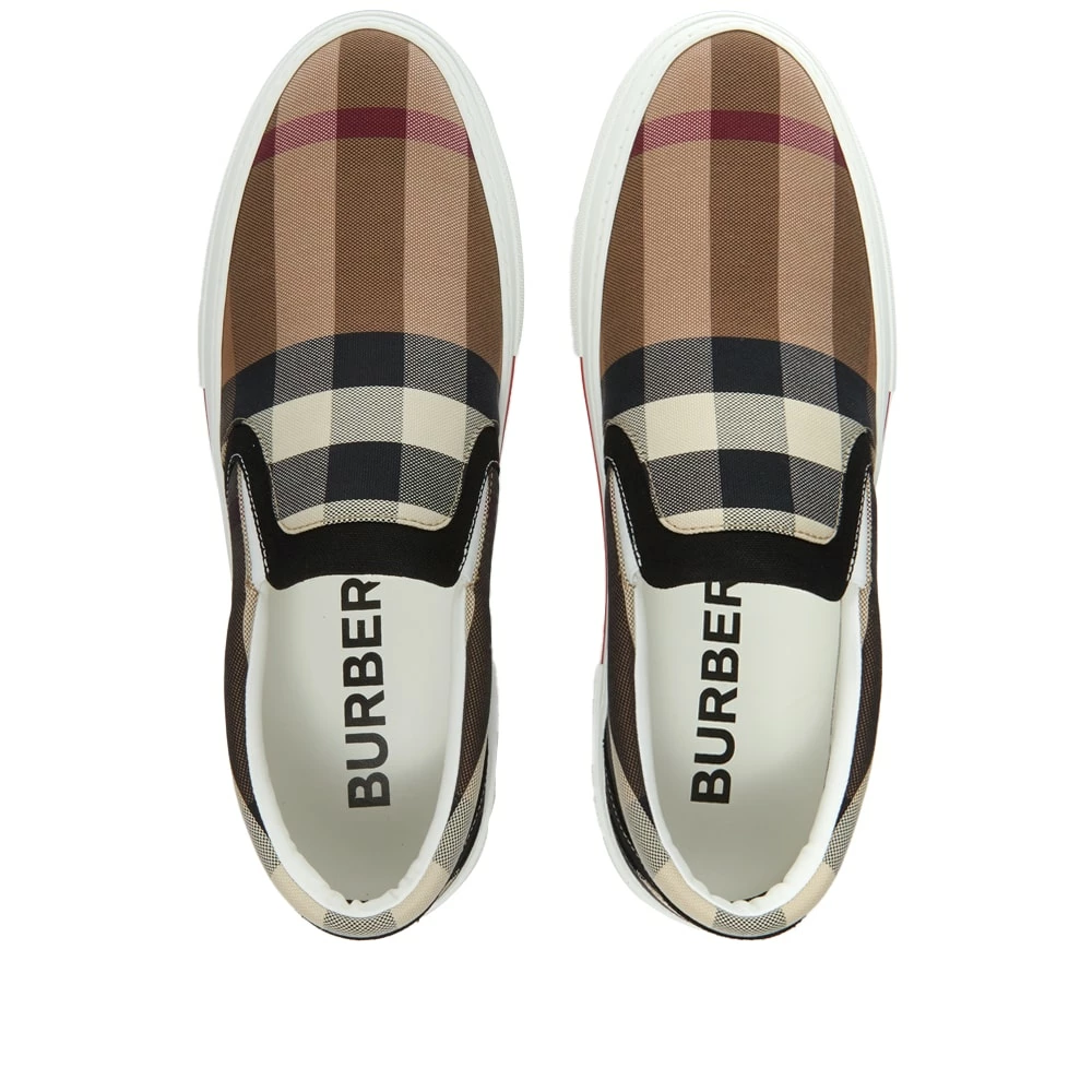 Showcasing its heritage status, Burberry wraps these Curt slip on sneakers in its signature brown check. Made with textiles uppers and a rubber sole, the pair are complete with embossed branding for a luxe touch.