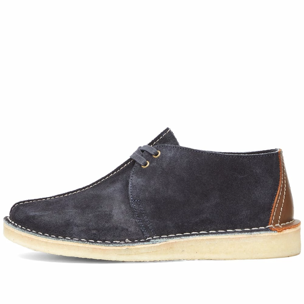 Clarks celebrates its 50th anniversary of the beloved and iconic Desert Trek and the star of the collection is of course the Trek Man. Standing as always – at the fob and heel – with his backpack and hiking pole in hand, he represents the steep heritage of the model – embedded in Jamaican culture. The textured suede uppers are stonewashed in an inky black and joined by the signature centre seam, atop the all familiar chunky rubber crepe outsole.