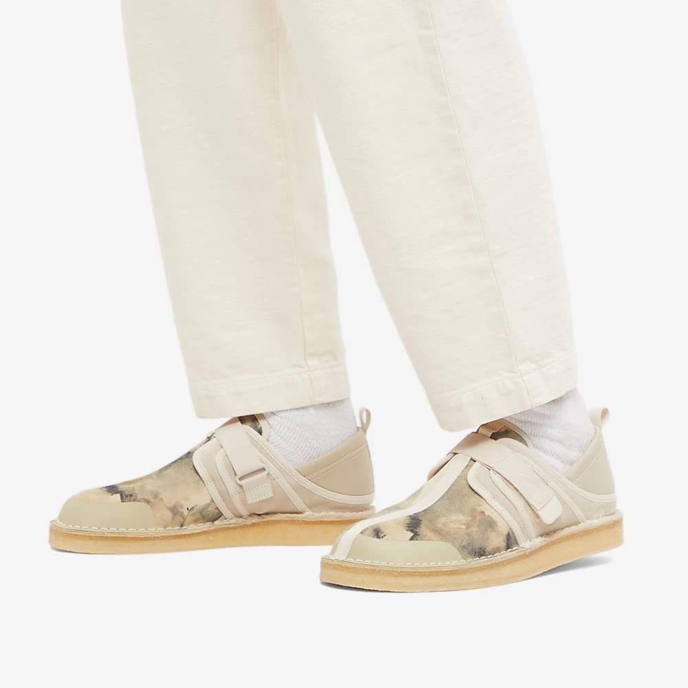 The footwear experts at Clarks Originals offer the Trek Taiyo – a stylish crossover between the sneaker and the trendy mule. A hybrid design with a kick-down heel, this pair is covered in a statement camo print in neutral shades and features that all-important natural crepe sole for comfort and stability.