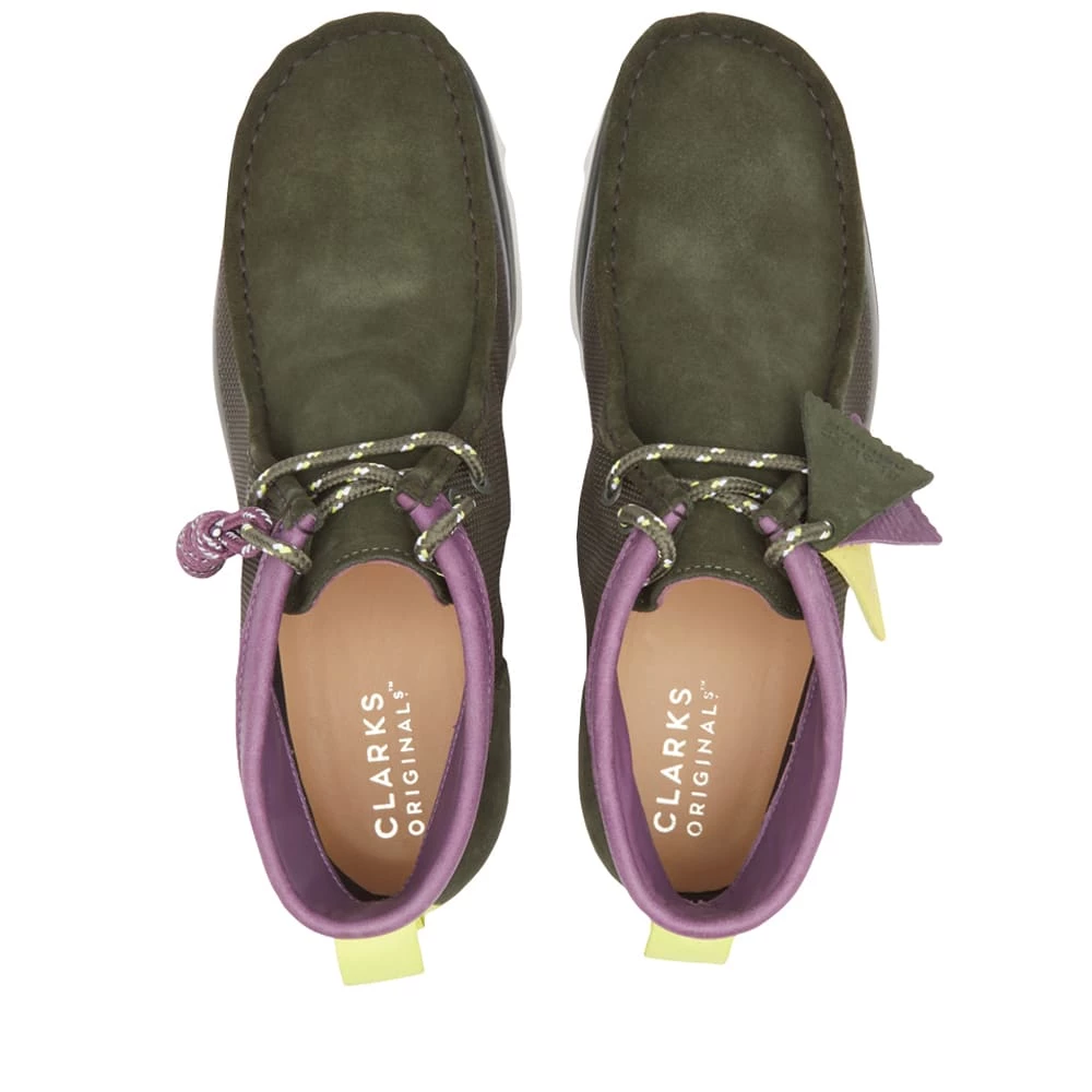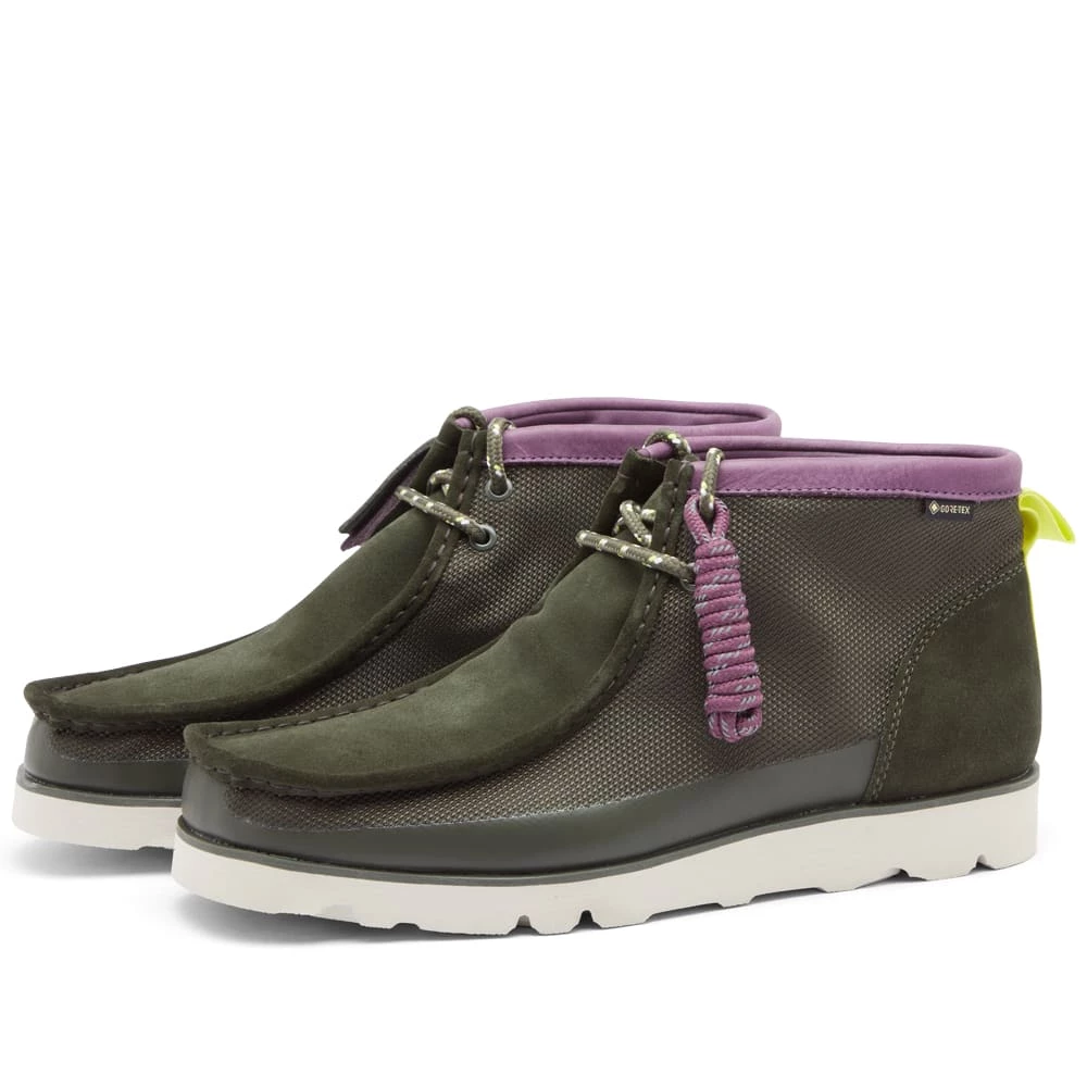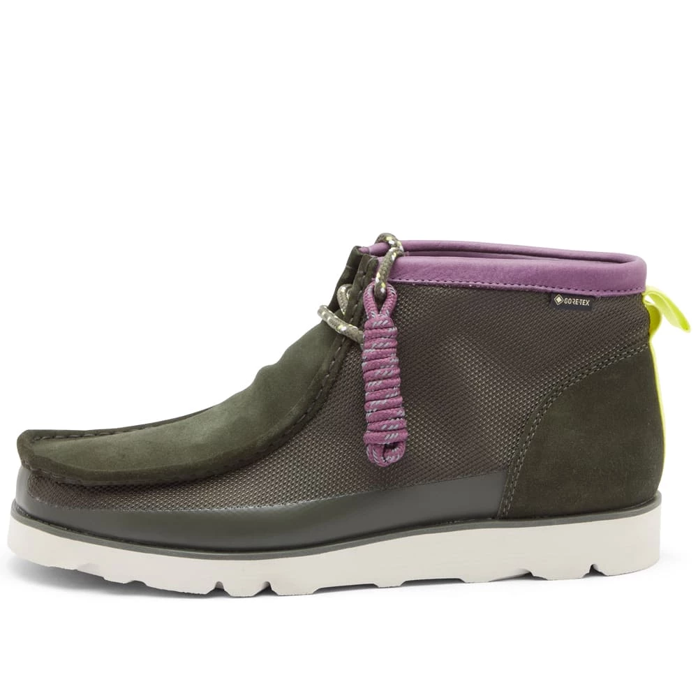 Clarks Originals contemporary classic gets a sporty rework. The Wallabee 2.0 Gore-Tex retains its water-proof mesh upper and durable Vibram outsole, while yellow suede collars and orange heel tabs are added to contrast the smart navy look.