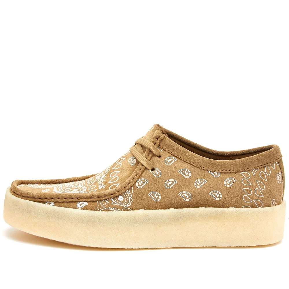 Clarks Originals Wallabee Cup shoe gets a funky update by way of its new paisley print. This dark olive pair are covered in the contrasting white print, while the crepe cupsole remains as chunky as ever underneath.