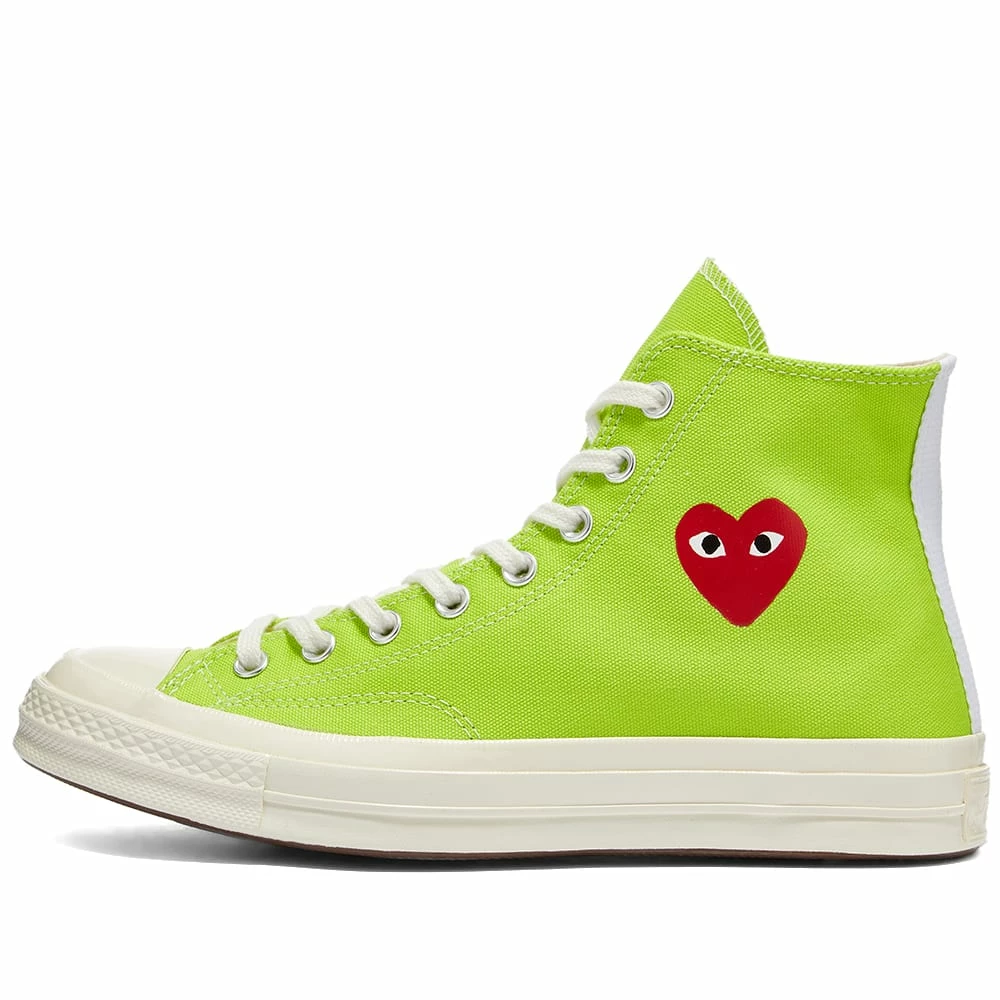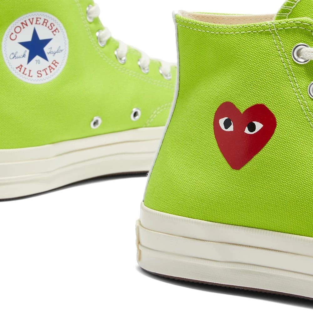 Converse and Rei Kawakubo’s Comme des Garçons PLAY are back again, and it’s the iconic Chuck Taylor that gets the nod once more, too. They’re very much the sneaker we know and love, with high foxing tape and classic canvas uppers, only the latter is coloured in vibrant green and detailed with that iconic bug-eyed heart on the outside.