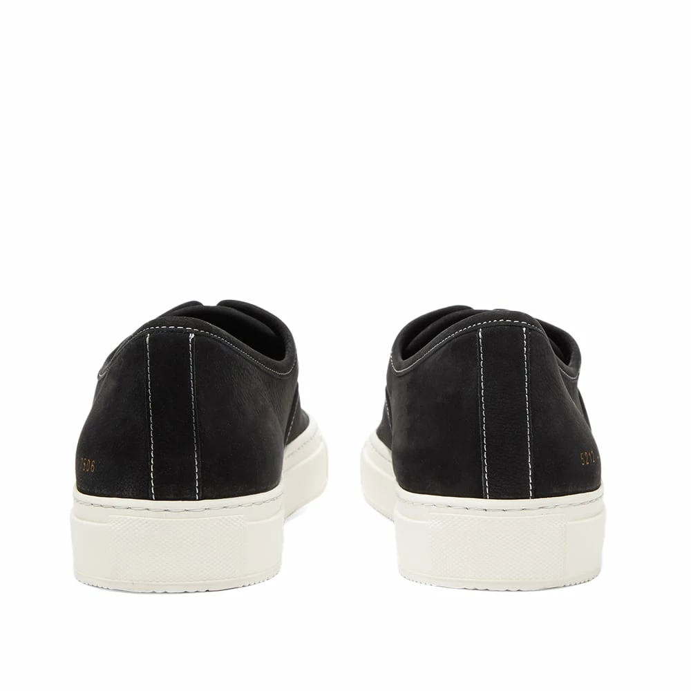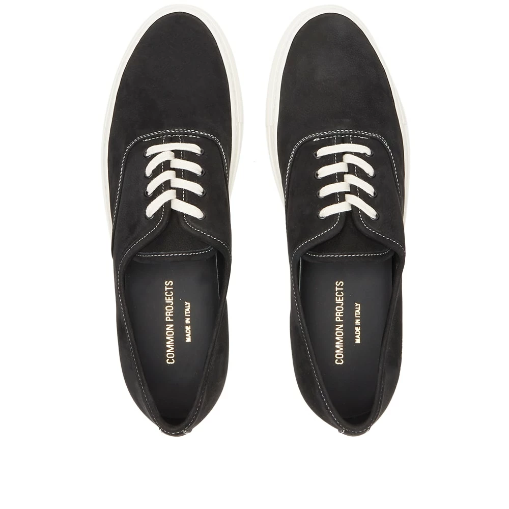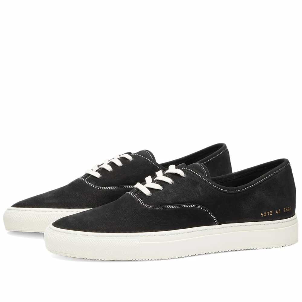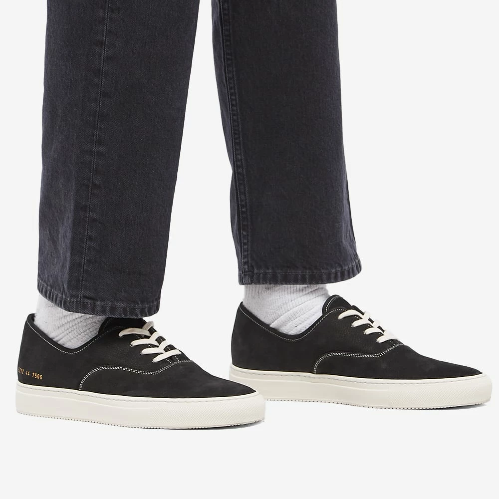 Presenting the perfect low-key luxury style, Common Projects share their four-hole sneakers. Dressed in black, this low-top pair is detailed with natural toned trim and a chunky rubber outsole for a comfortable and secure foundation. Made in Italy, add this pair to your rotation in time for a chic, casual look.