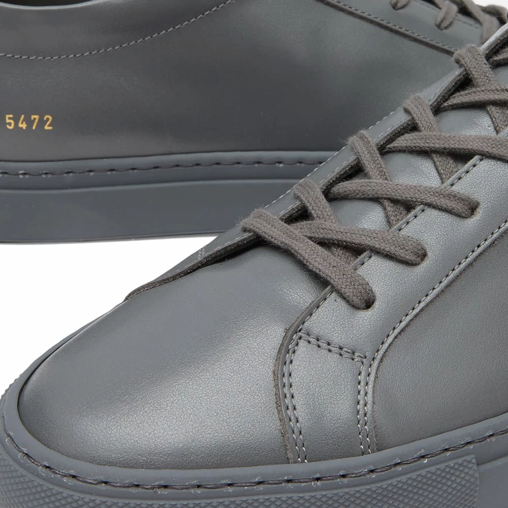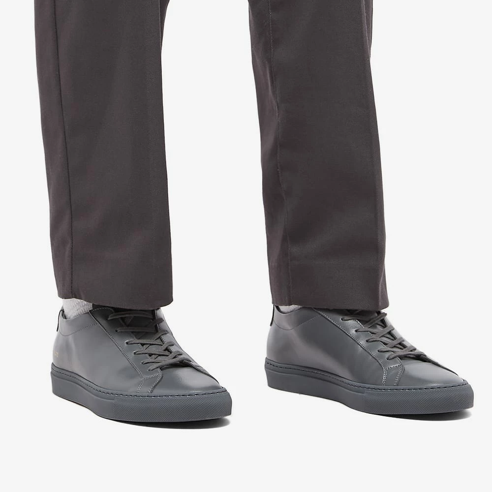 The original cult-favourite sneaker, the Achilles design from Common Projects is available in High, Mid and Low cut versions. The clean lines and minimal branding exemplify everything the brand stands for, with the luxurious Italian leather uppers stitched to tough vulcanized rubber soles for superior construction. The full leather lining and insole round off the sleek design, all individually stamped with a unique code to mark the colour, code and size.