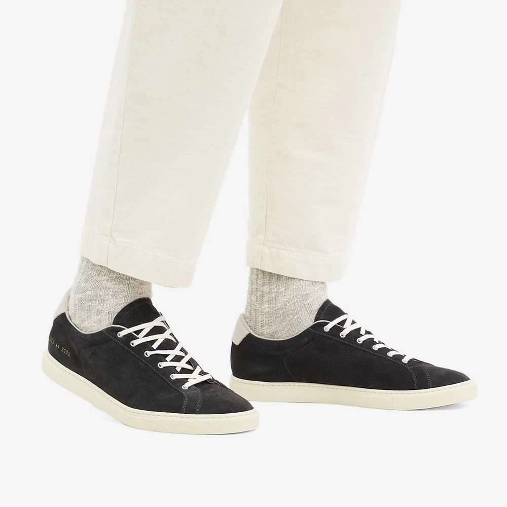 Known for its cult-favourite sneakers, New York-based Common Projects continues with timeless iterations of its iconic Achilles retro low. Sporting a suede makeover this season, this Italian-made pair show off navy uppers with white heel tabs sat upon a bouncy rubber sole. The clean lines and minimal branding exemplify the brands ethos, offering unparalleled durability and comfort – becoming better with every wear.