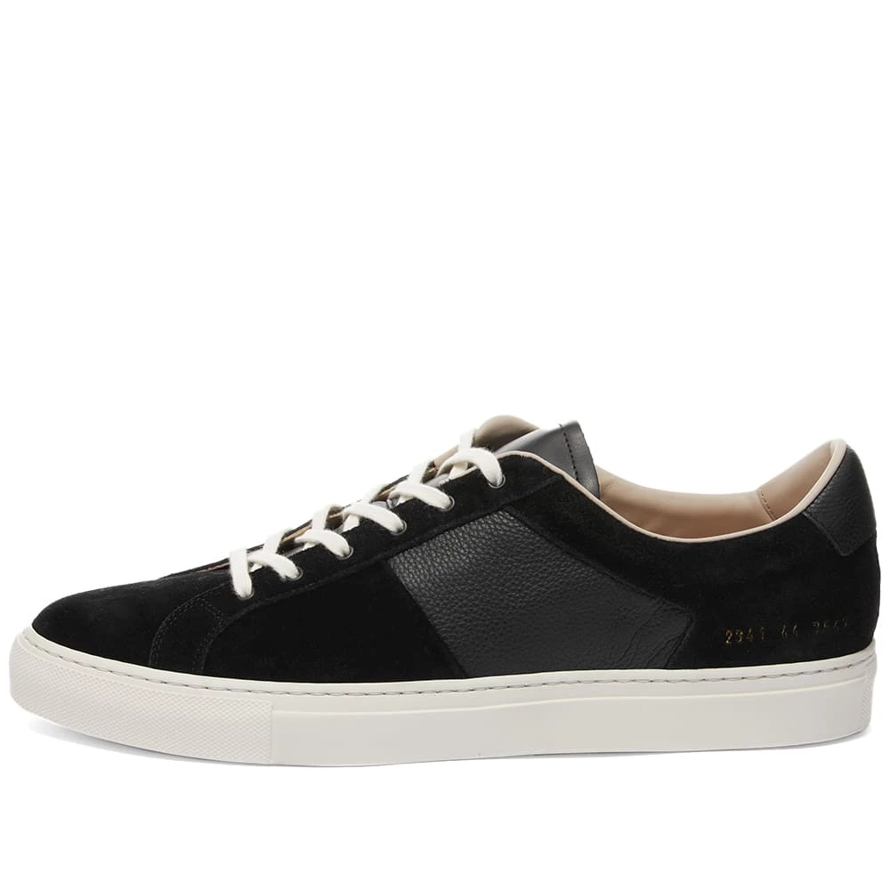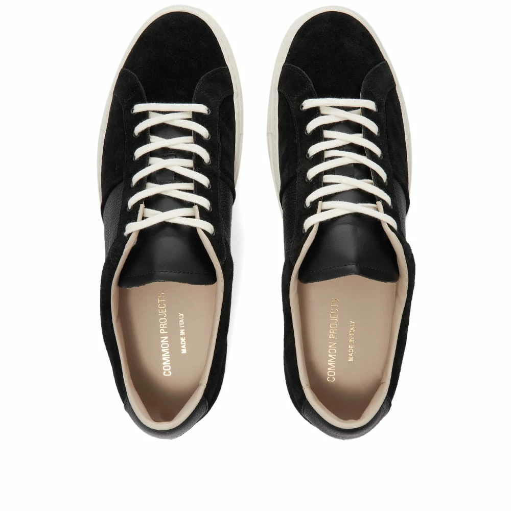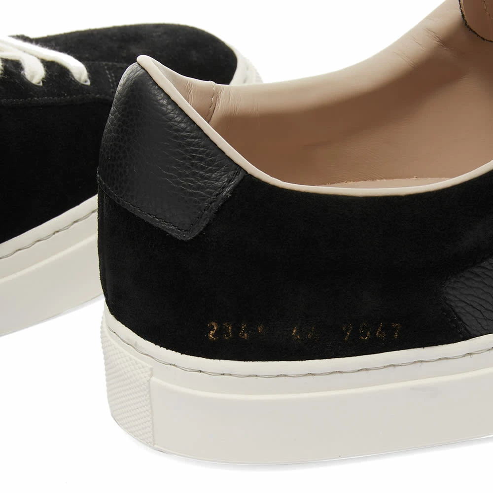 Common Projects Achilles sneaker has gained cult status thanks to its minimalist design and superior construction. An updated version of the best selling low-tops, they have been crafted with a black suede and leather upper. Finished with embossed gold branding on the sole.