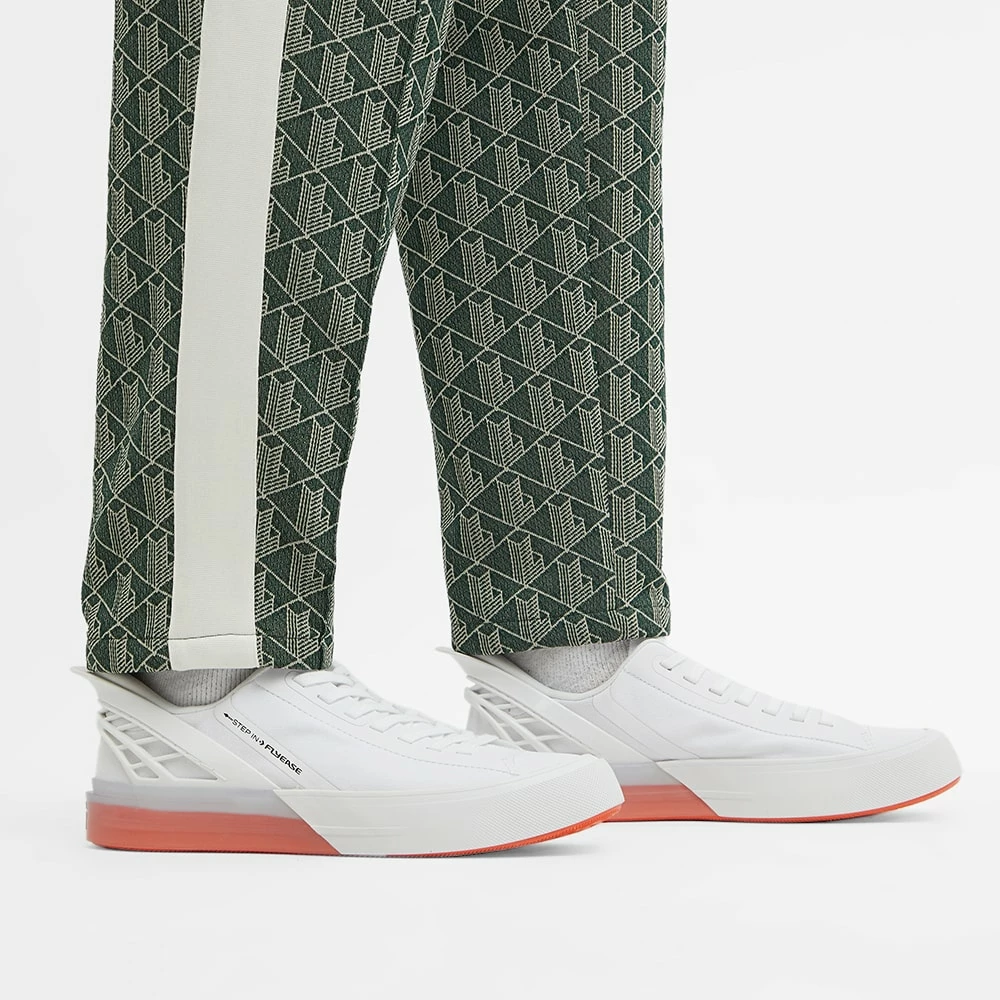 Converse fuses its iconic All-American style with functionality for the Flyease sneaker. Arriving here in white, the uppers are made from the usual canvas, then updated with a leather toe cap and a half translucent rubber side strip that allows the orange sole unit to shine through. The dynamic – slightly more streamlined – silhouette provides a futuristic look, while a stretchy tongue allows for easy wear.