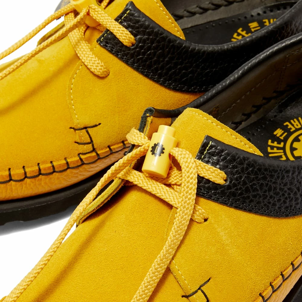 A name that has become synonymous with the production of quality footwear, Padmore & Barnes has been hand-crafting moccasin shoes from their Kilkenny factory since 1934. The brand’s latest collaboration with creative agency Distinct Life presents a modern take on the brand’s original M387 Willow. The uppers are made from supple mustard yellow suede and overlaid with premium panels of grainy black leather and joined to a hand stitched moccasin yellow leather base. Underfoot, the brands unite to form a unique rubber sole unit and sign this pair off with a contemporary toggled lace closure.