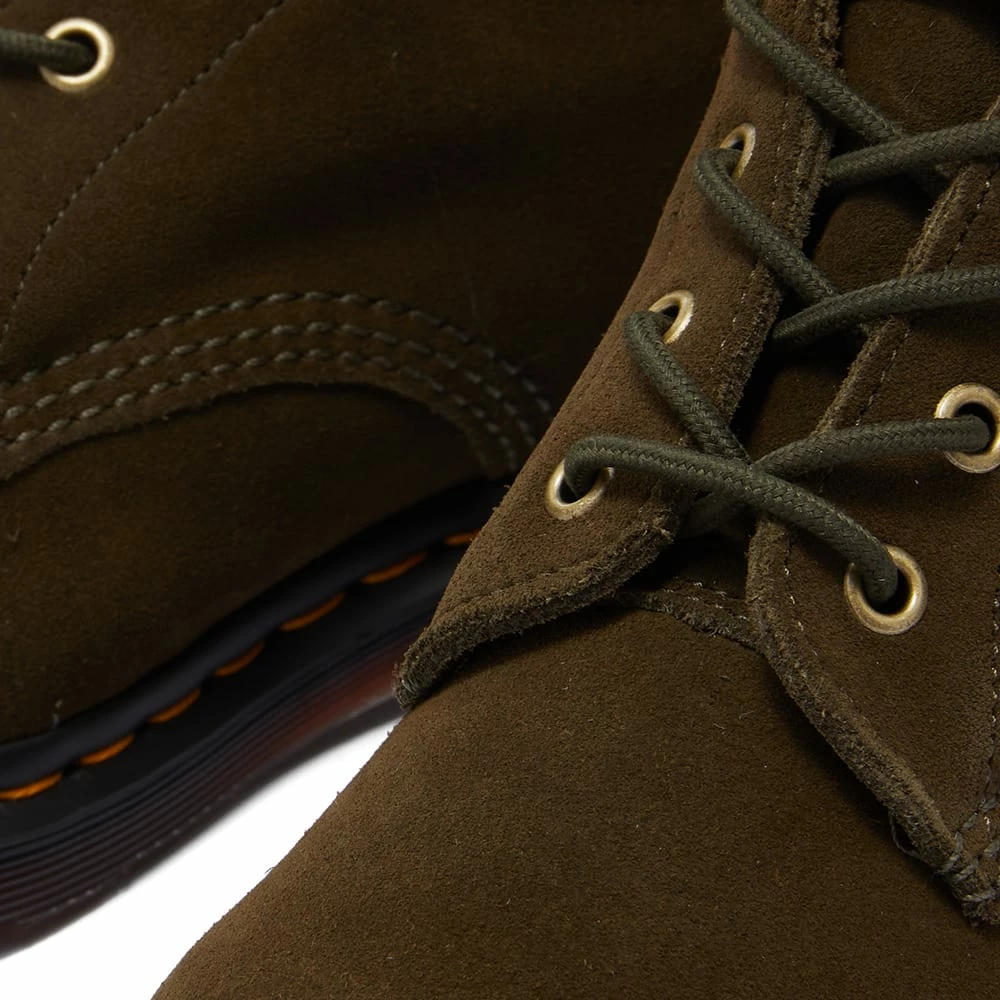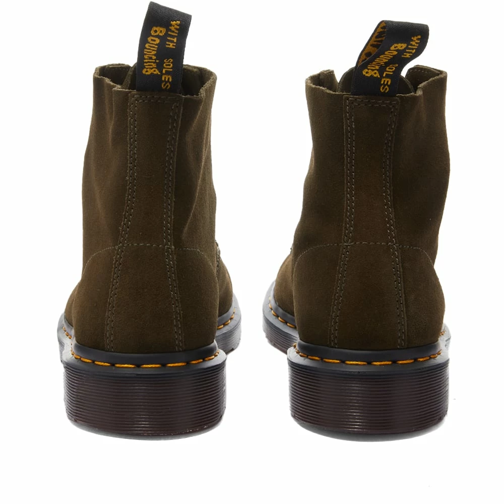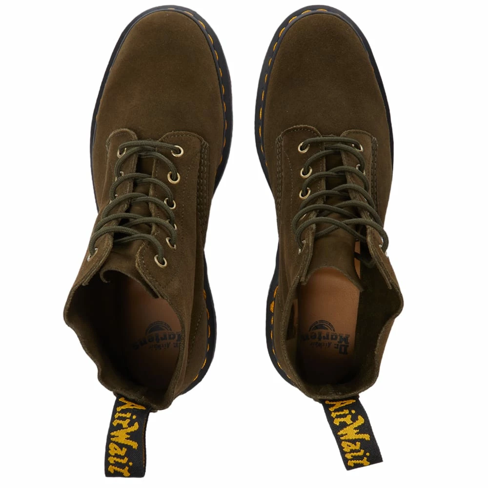 Shortened down with six eyelets – rather than the classic eight – the 101 6-Eye boots from Dr. Martens are made using supple olive suede. Sitting lower, they add a contemporary touch to a classic, complete with the iconic, AirWair™ sole for dependable abrasion and slip resistance.