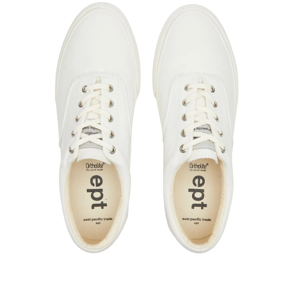 Seoul-based brand East Pacific Trade makes good use of its skillful craftsmanship this season – putting it on show with these Deck sneakers. A reinterpretation of the classic white low-top, they’re structured with monochromatic canvas uppers and punctuated using contrasting embroidered branding and the boat logo at the heel.