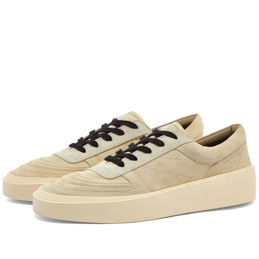 A subdued take on the classic skater sneaker, this low-top from Fear of God is minimally accented with contoured stitching detail across the toe and sidewall of its stone suede upper. It’s crafted in Italy and styled with classic FoG footwear signatures, including a silver-toned toggle securing the lace and a chunky platform sole that’s branded with embossed lettering at the heel.