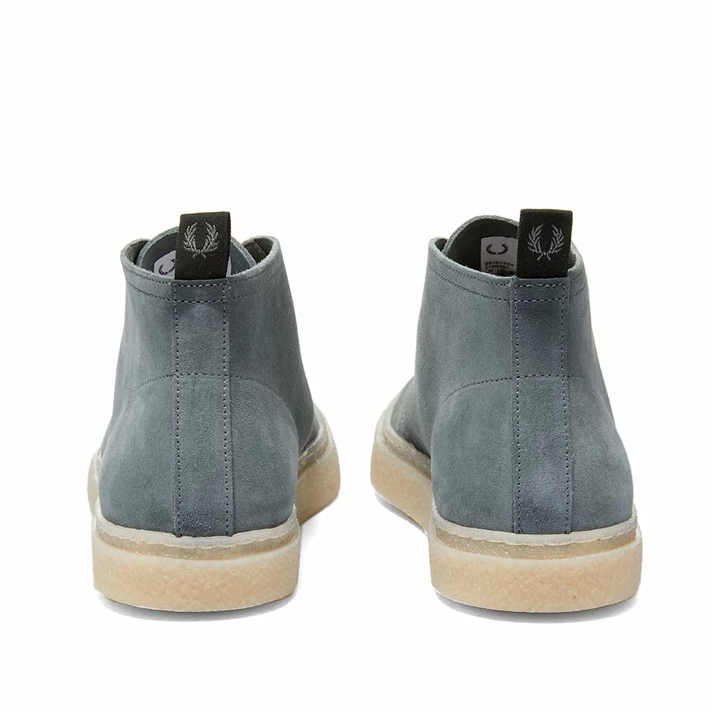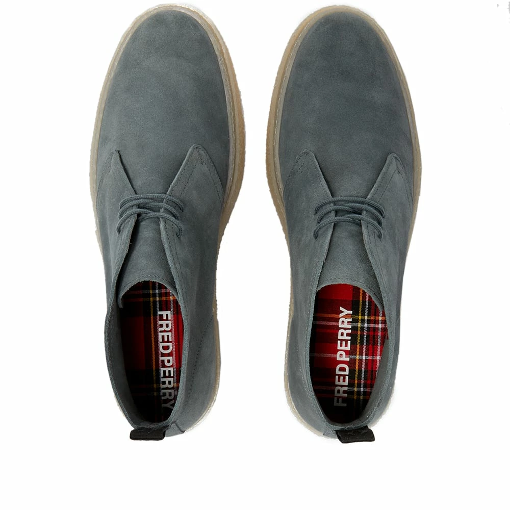 The desert boot has long been a mod staple, and it provides the inspiration for Fred Perry’s Hawley shoe. This version is cut from grey suede across its upper and joined to a crepe rubber sole to give that timeless look.