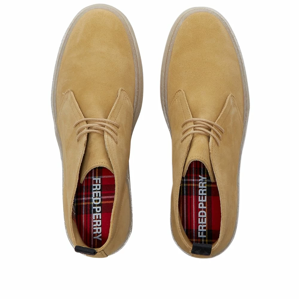 The desert boot has long been a mod staple, and it provides the inspiration for Fred Perry’s Hawley shoe. This version is cut from beige suede across its upper and joined to a crepe rubber sole to give that timeless look.