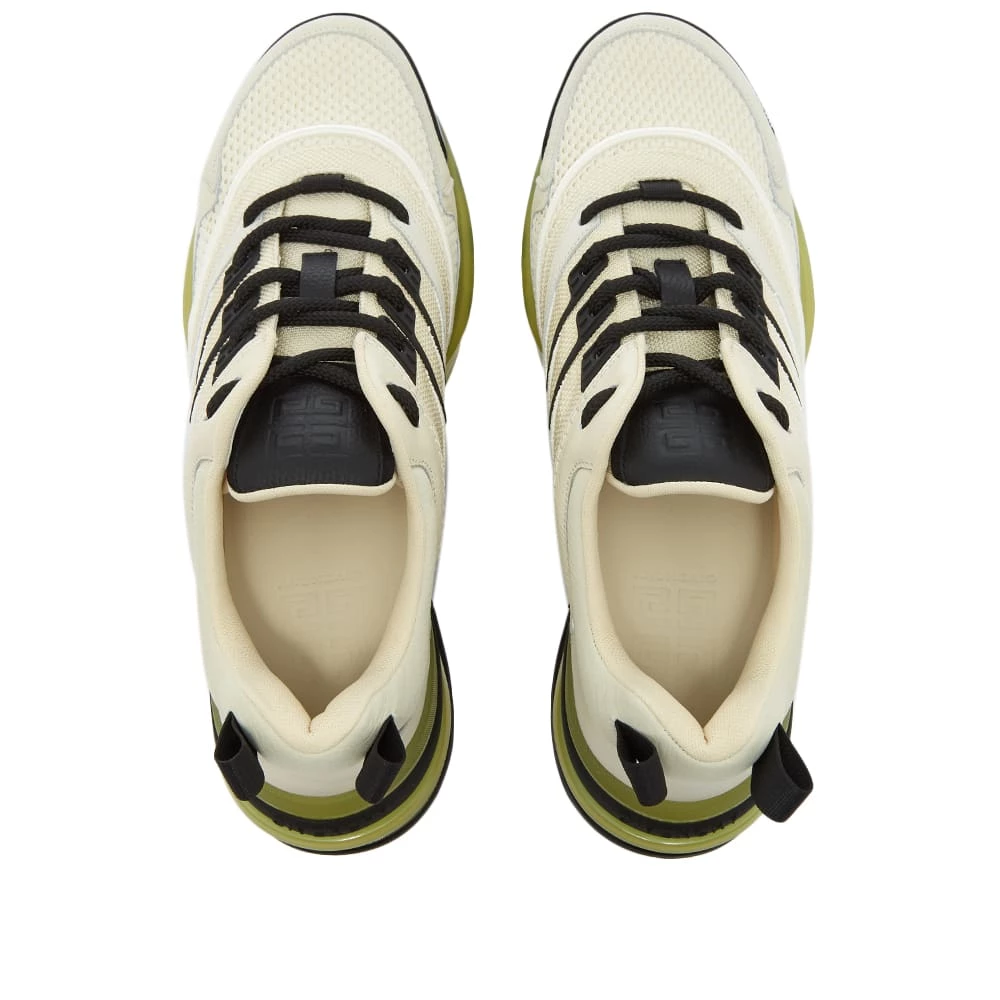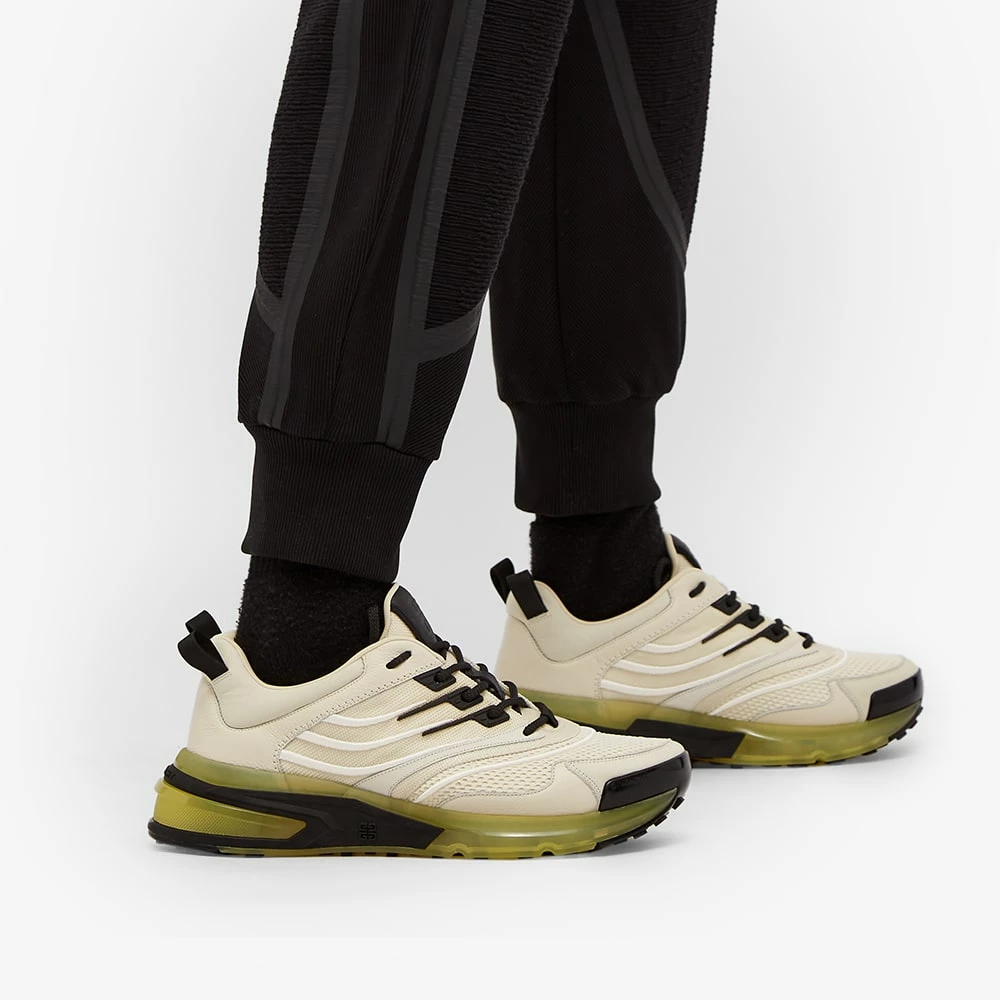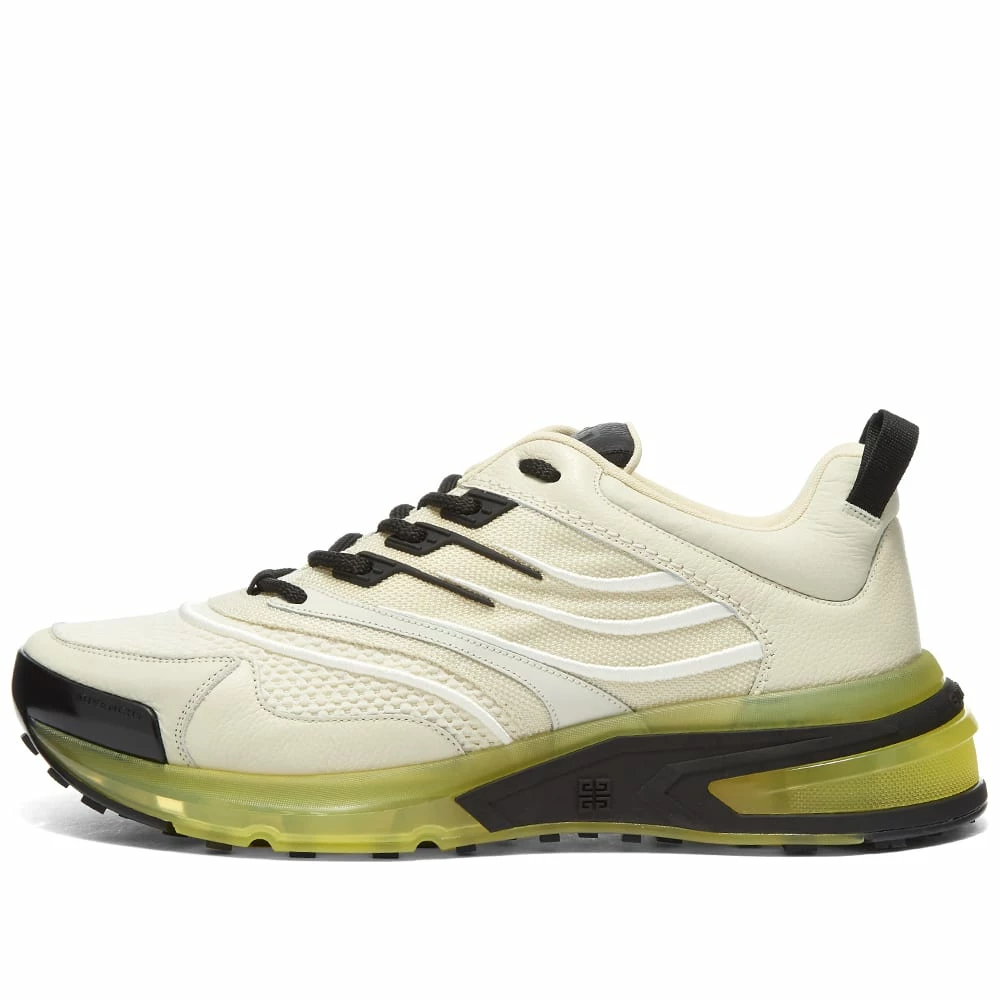 Cool and contemporary, the Giv 1 Runner sneaker from Givenchy is styled with a fresh off-white upper. Made from leather, mesh and textile, it’s paired with a transparent yellow sole for a modern finish.
