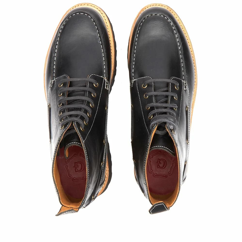 Founded in 1866 by William Green, Grenson was born in the home of British shoemaking – Northamptonshire. Grenson is known for the high quality and longevity of its shoes, which are created over eight weeks using 200 processes by expert craftspeople. The brand’s classic Easton boots are an apron derby boot with the styling of a boat shoe; these heritage models feature hand stitched seams, characteristic square cut leather laces and a classic leather strip.