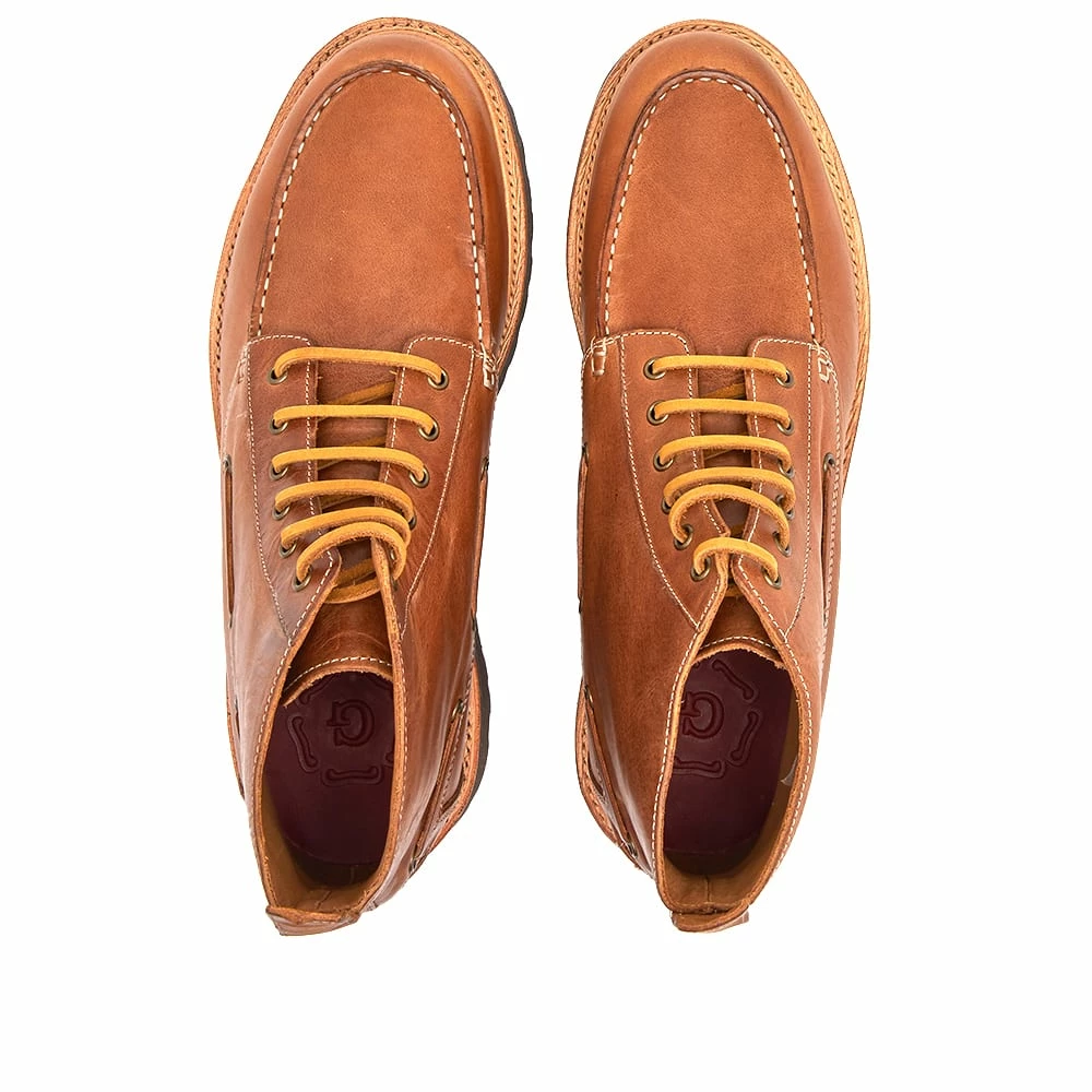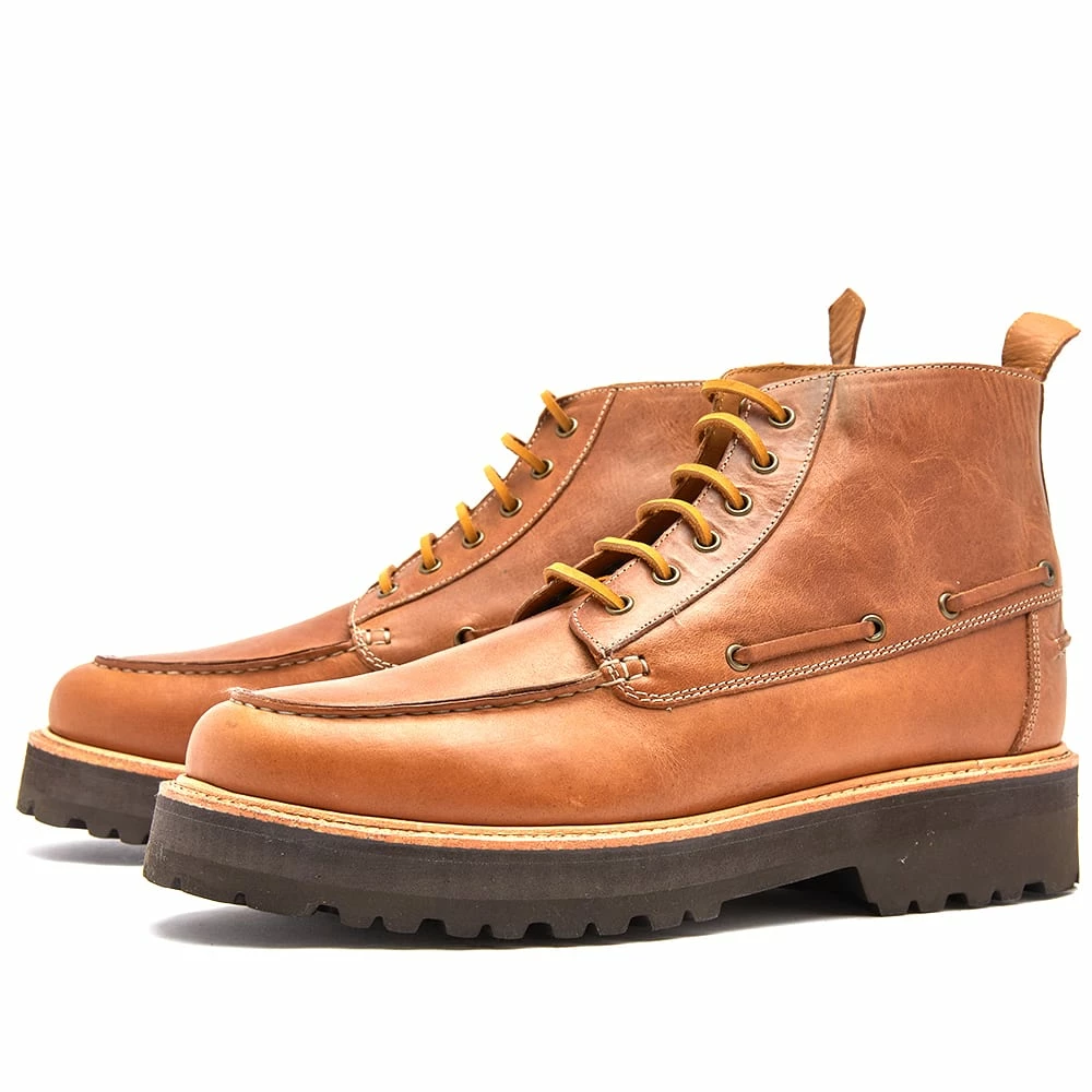 Founded in 1866 by William Green, Grenson was born in the home of British shoemaking – Northamptonshire. Grenson is known for the high quality and longevity of its shoes, which are created over eight weeks using 200 processes by expert craftspeople. The brand’s classic Easton boots are an apron derby boot with the styling of a boat shoe; these heritage models feature hand stitched seams, characteristic square cut leather laces and a classic leather strip.