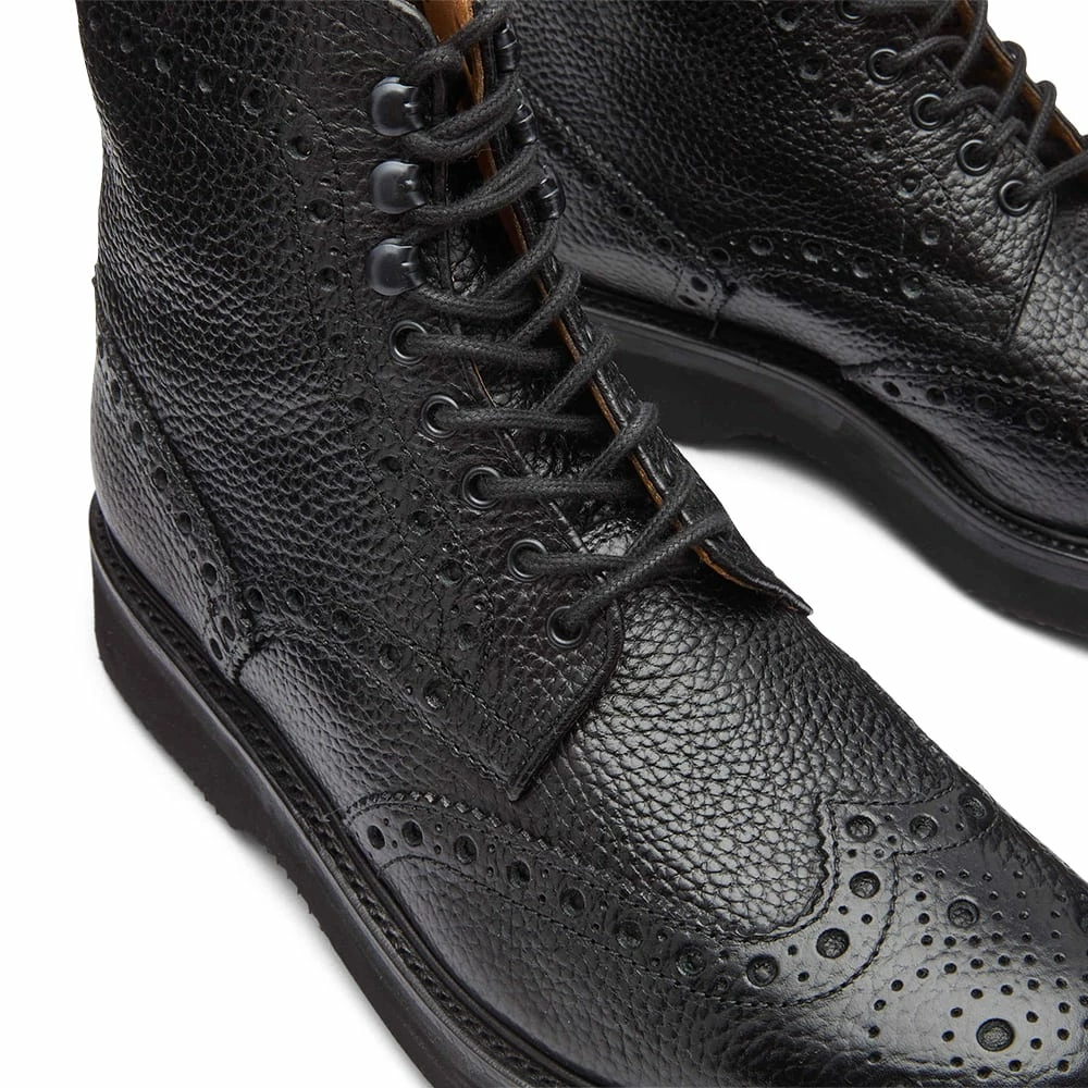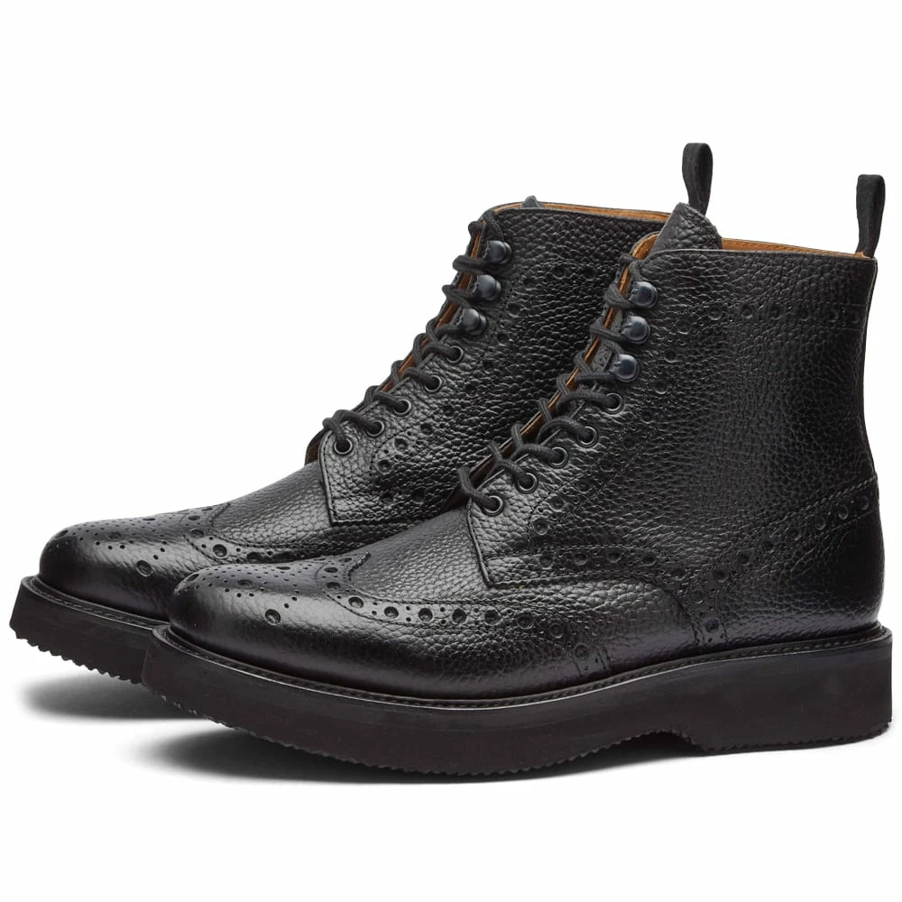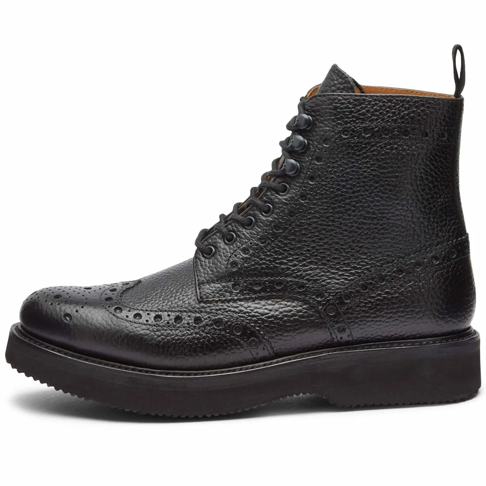 British heritage brand Grenson shows off its knack for traditional and timeless styling through these black brogue boots, infusing the classic brogue design with a military staple these shoes are like no other. The uppers are built using premium leather – featuring the brands signature oversized punching details – and carefully sit upon a split rubber sole. Style these boots with a pair of rolled up jeans for cool city look.