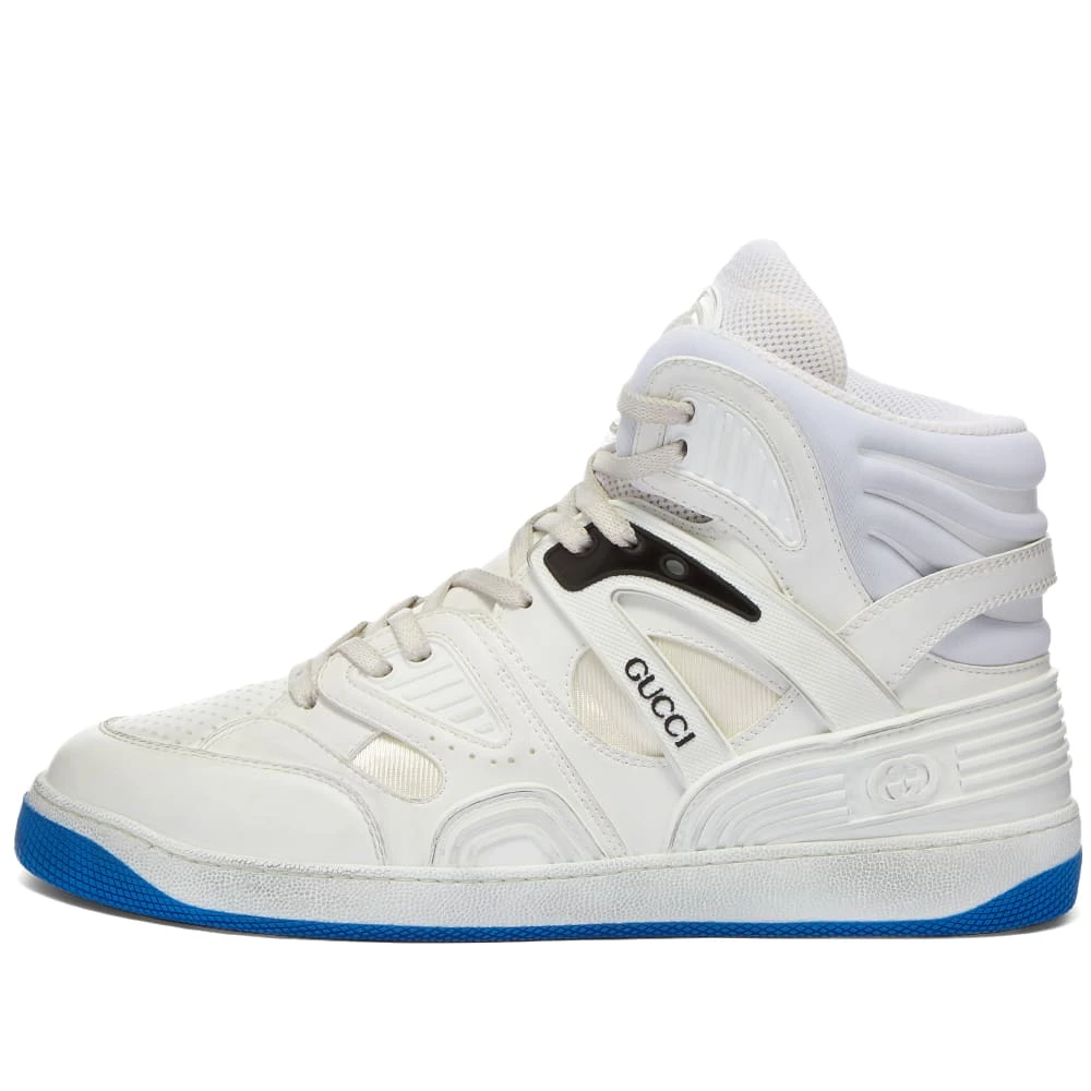 Court-ready style meets Gucci’s high-fashion aesthetic to create the Basket sneaker. Inspired by ‘90s basketball, it features a hi-top silhouette that’s made from Demetra, the fashion house’s eco-friendly material. A bold blue rubber sole and Gucci branding throughout finishes off the look with modern flair.
