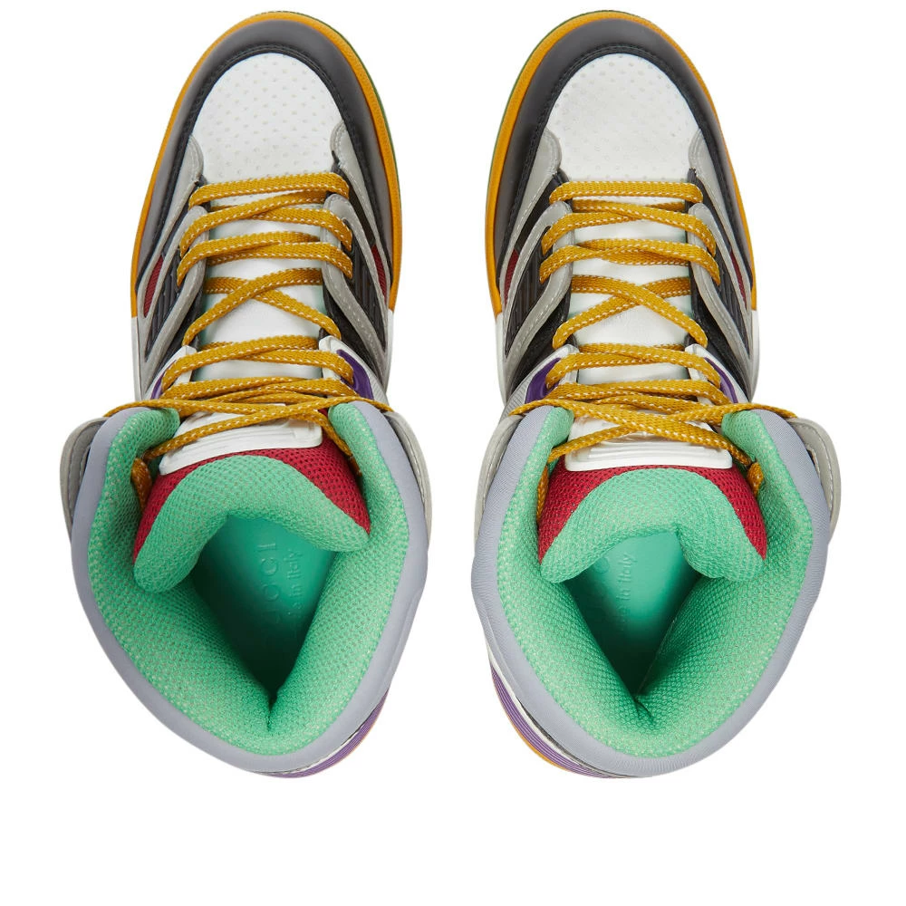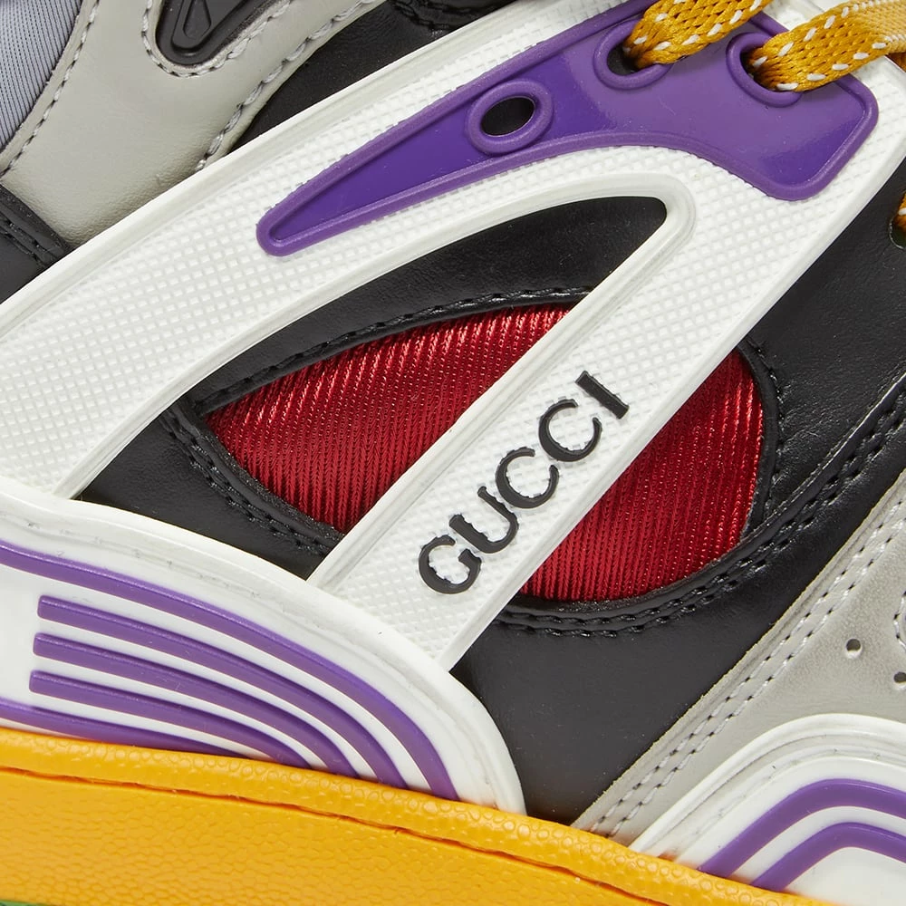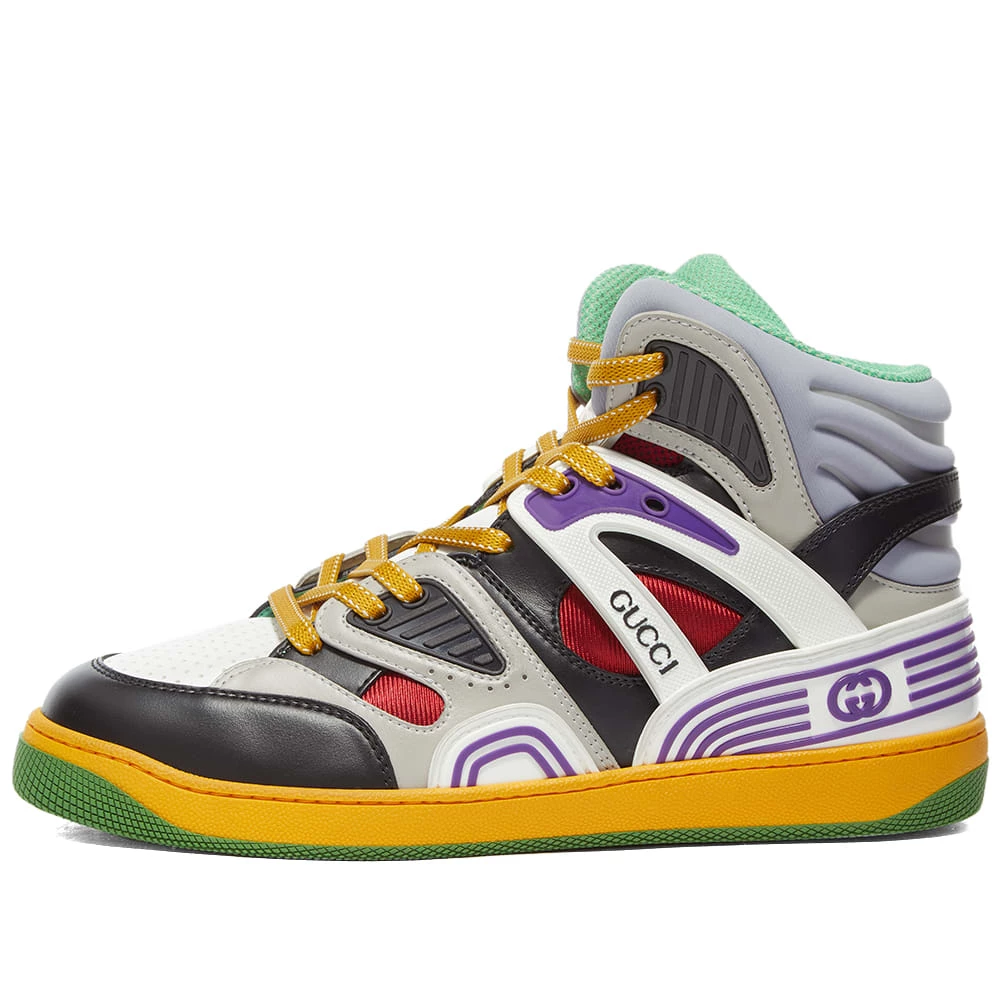 Court-ready style meets Gucci’s high-fashion aesthetic to create the Basket sneaker. Inspired by ‘90s basketball, this hi-top silhouette arrives in a retro mix of bright colours with a lightly distressed effect throughout. Sustainably made in Italy from Demetra -the fashion house’s eco-friendly material – they’re finished off with a bold yellow rubber sole and the label’s signature interlocking G branding across the tongue.