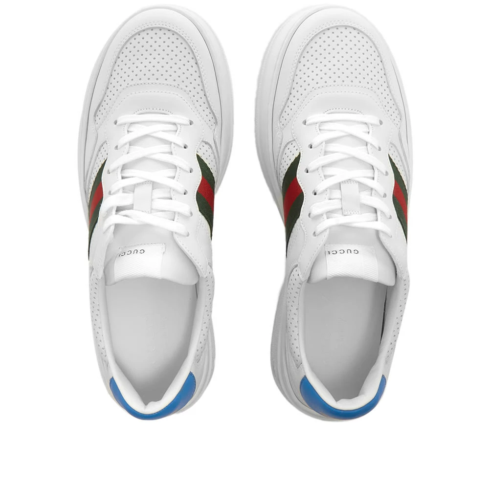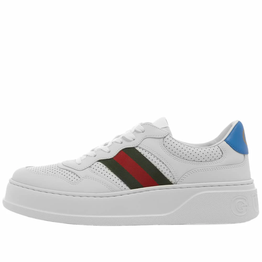 A fresh take on Gucci’s archival looks, this luxe Dali sneaker is crafted in Italy from supple white leather. Inspired by the houses ties to the equestrian world, they’re detailed with a contrasting blue heel counter and feature the brand’s signature red and green webbing across the sidewalls. Perforated underlays gives this pair an added sporty edge which ties in nicely with the retro chunky rubber sole.