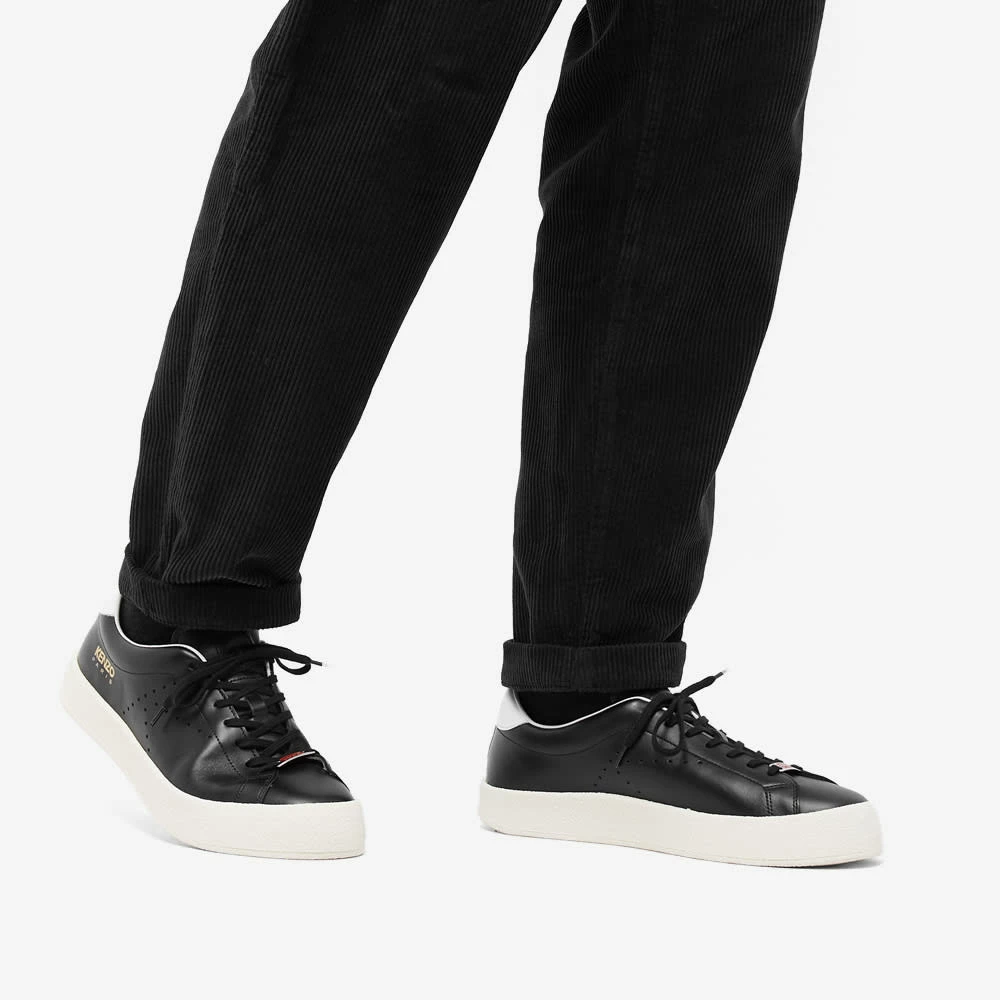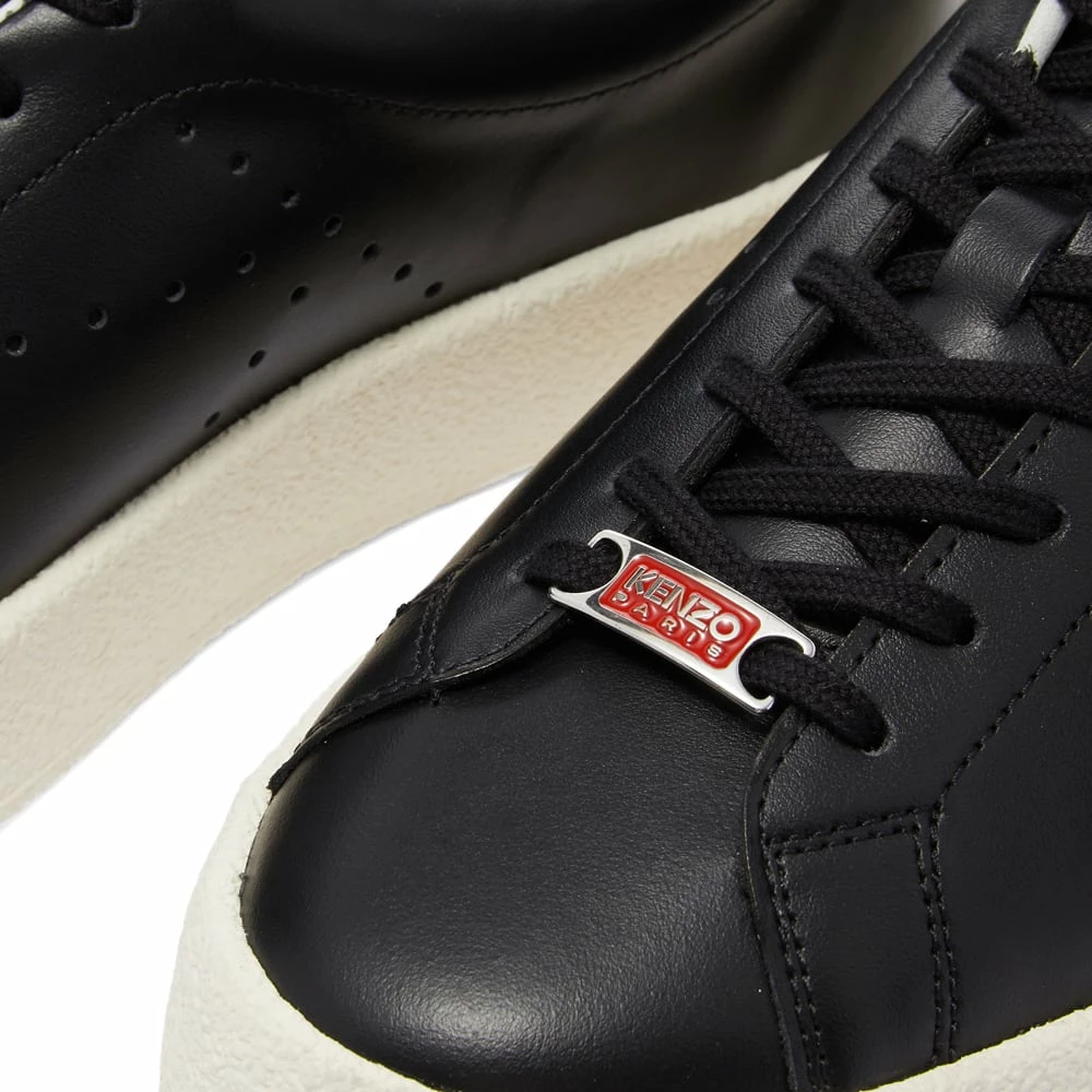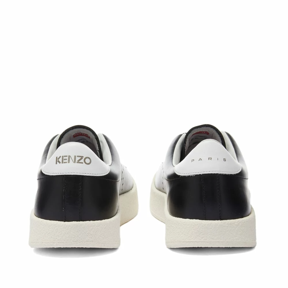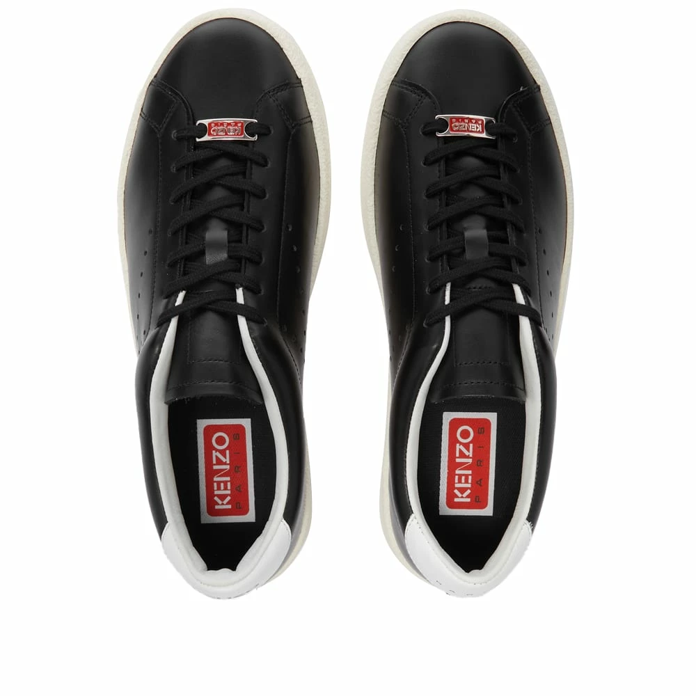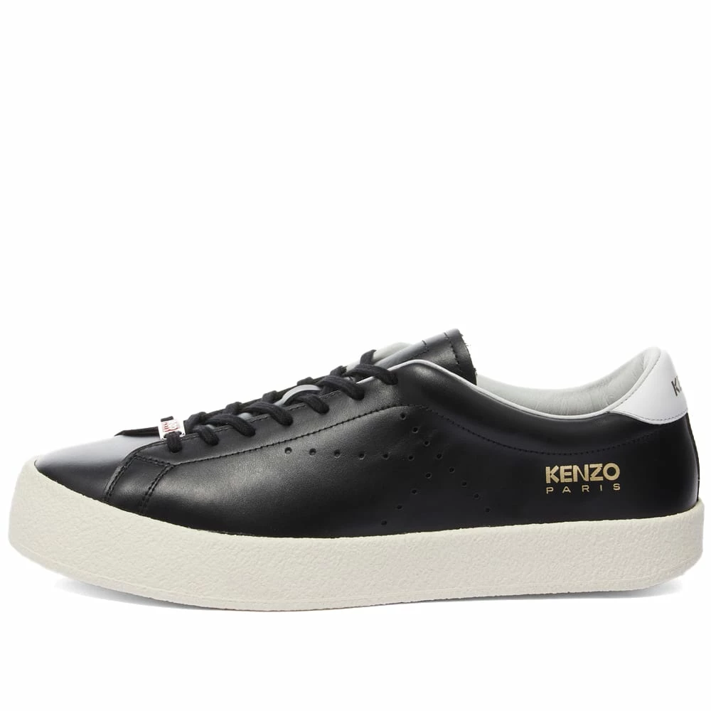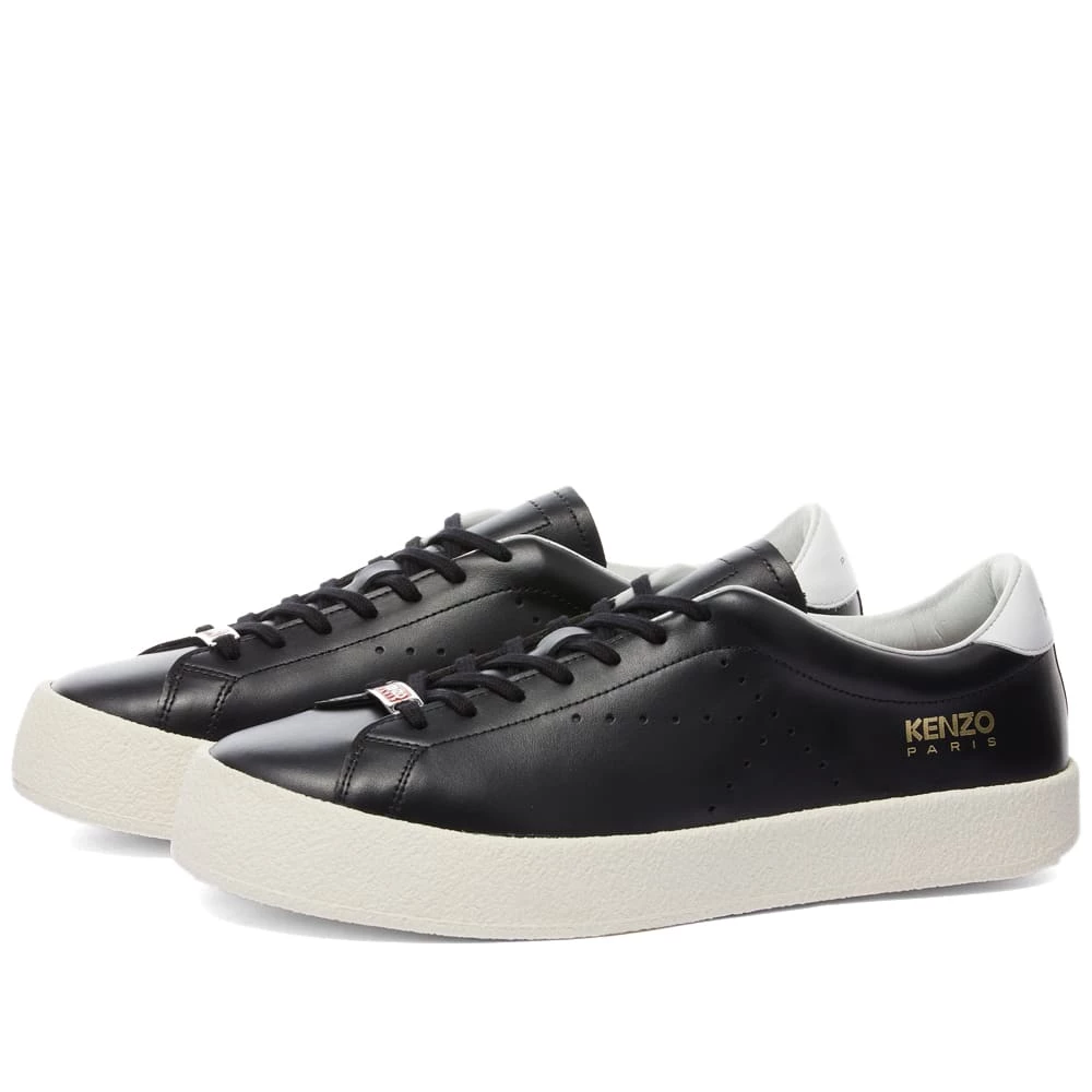 Offering the perfect finishing touch for dynamic outfits these KENZO lace up black sneakers have a sophisticated sportswear style. Subtle side performations shaped in the iconic ‘K’, are contrasted with a white heel tab and outsole. Finished with a gold printed logo.