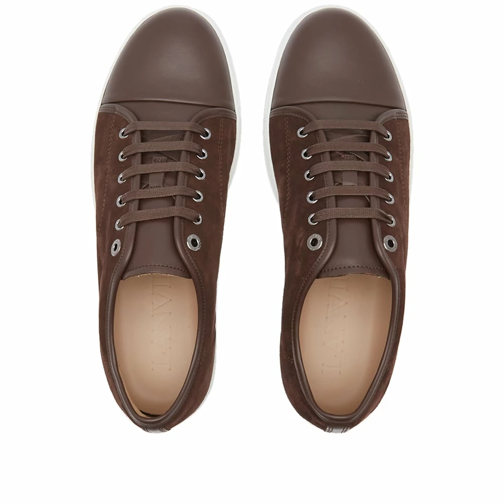 Reinventing sneakers with an element of timeless luxury, Bruno Sialelli’s Lanvin sculpts this tan pair using leather and suede. Taking a layered-up approach, they’re decorated with a patent leather top cap, and a rubber outsole adds a durable finishing touch.