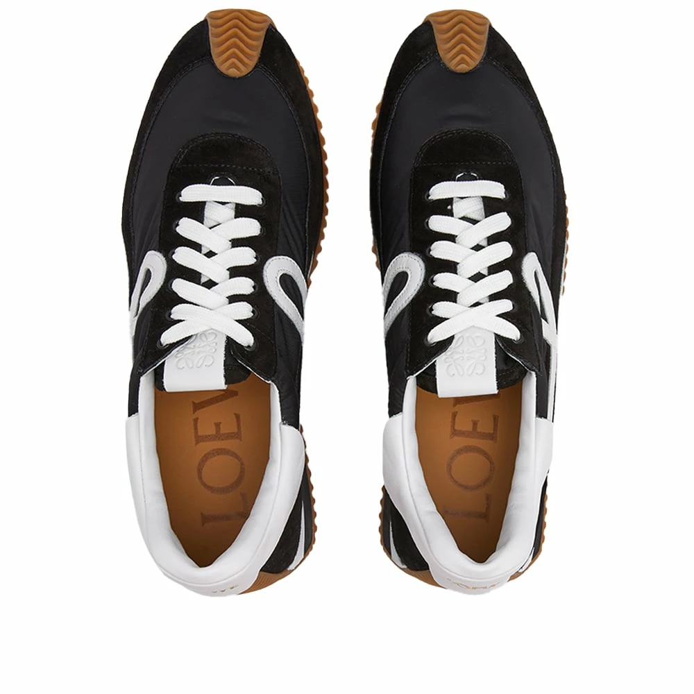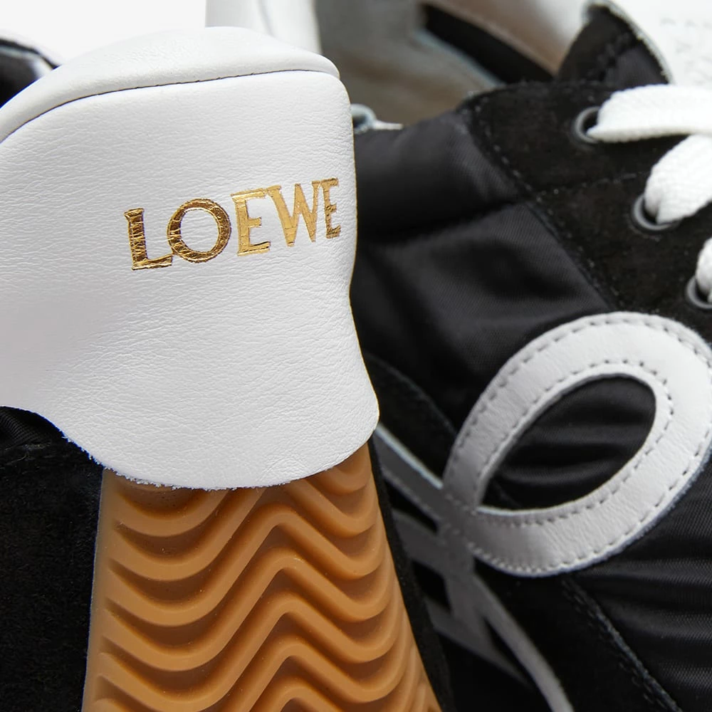 Add a retro touch to your sneaker line-up with the Loewe Flow Runner sneaker. The uppers are crafted from rubber and overlaid with suede, then fitted with a honey rubber sole that curves around the toe to the back of the heel. These vintage-inspired sneakers are finished off with an embossed monogram on the tongue and an L monogram on the side wall, too.
