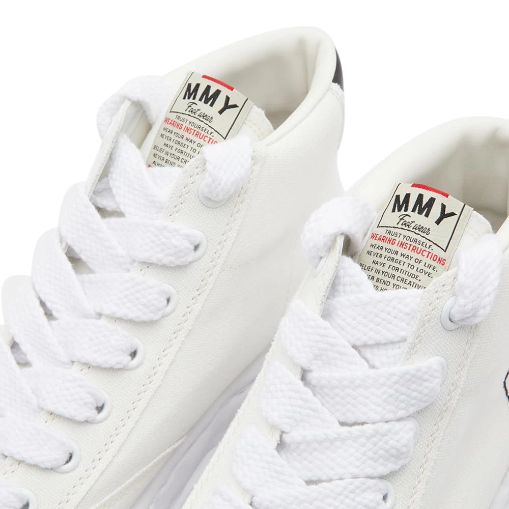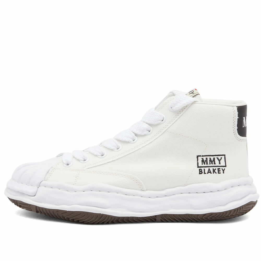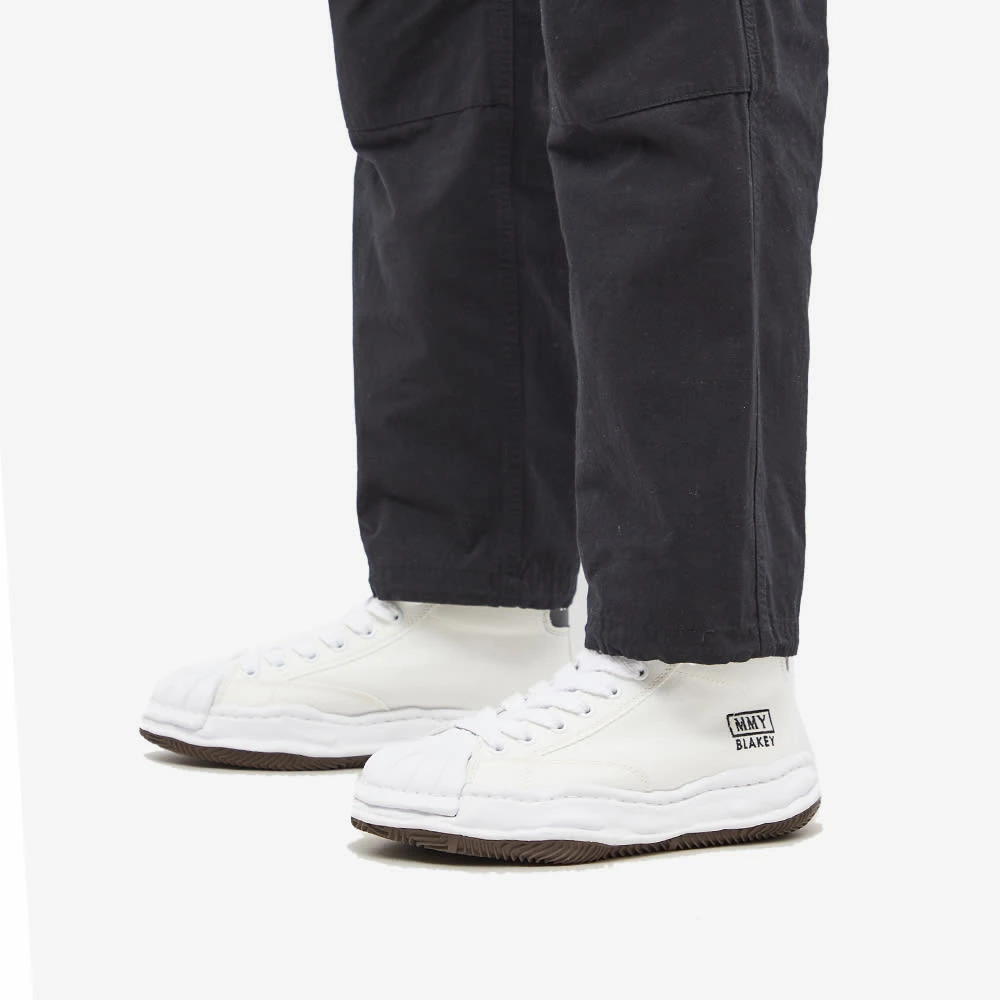 Maison MIHARA YASUHIRO transforms all-familiar silhouettes into the otherworldly, pushing the boundaries of conventional design. The Japanese designer nods to old-school Americana with the Blakey high top sneaker. Canvas contrast stitched uppers are dominated by the signature putty-like rubber sole unit and printed MYY branding signs off the side wall and heel.