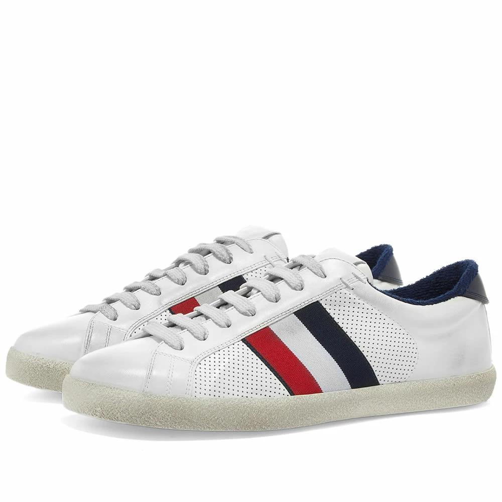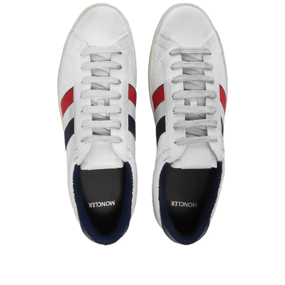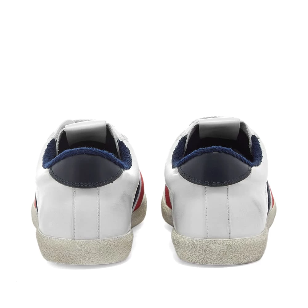 Moncler pays tribute to tennis and its French heritage with this white leather sneaker. It’s got a towel lining — reminiscent of the sweatbands worn by players on the courts — and tricolore striping on each sidewall, while subtle distressing appears throughout, too.