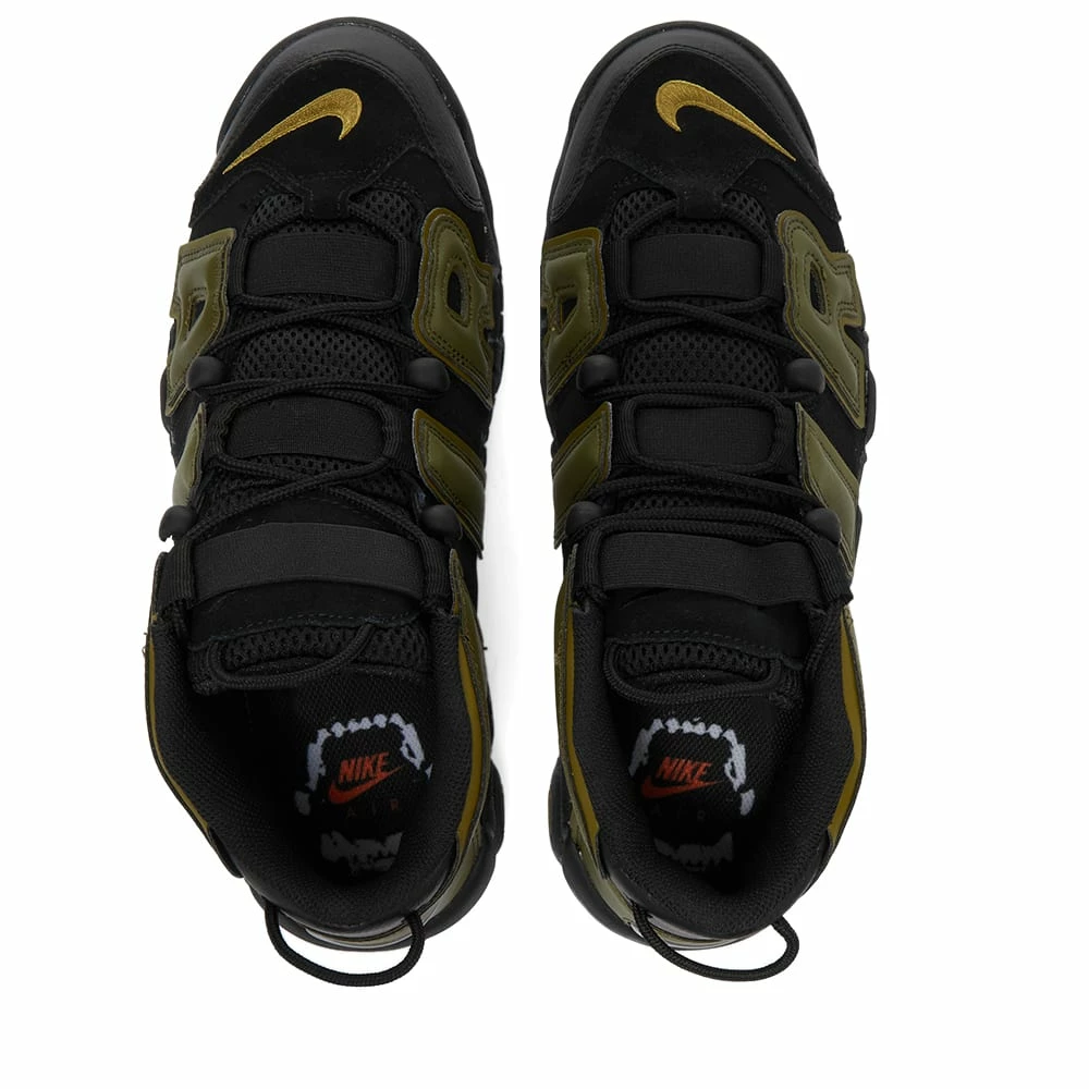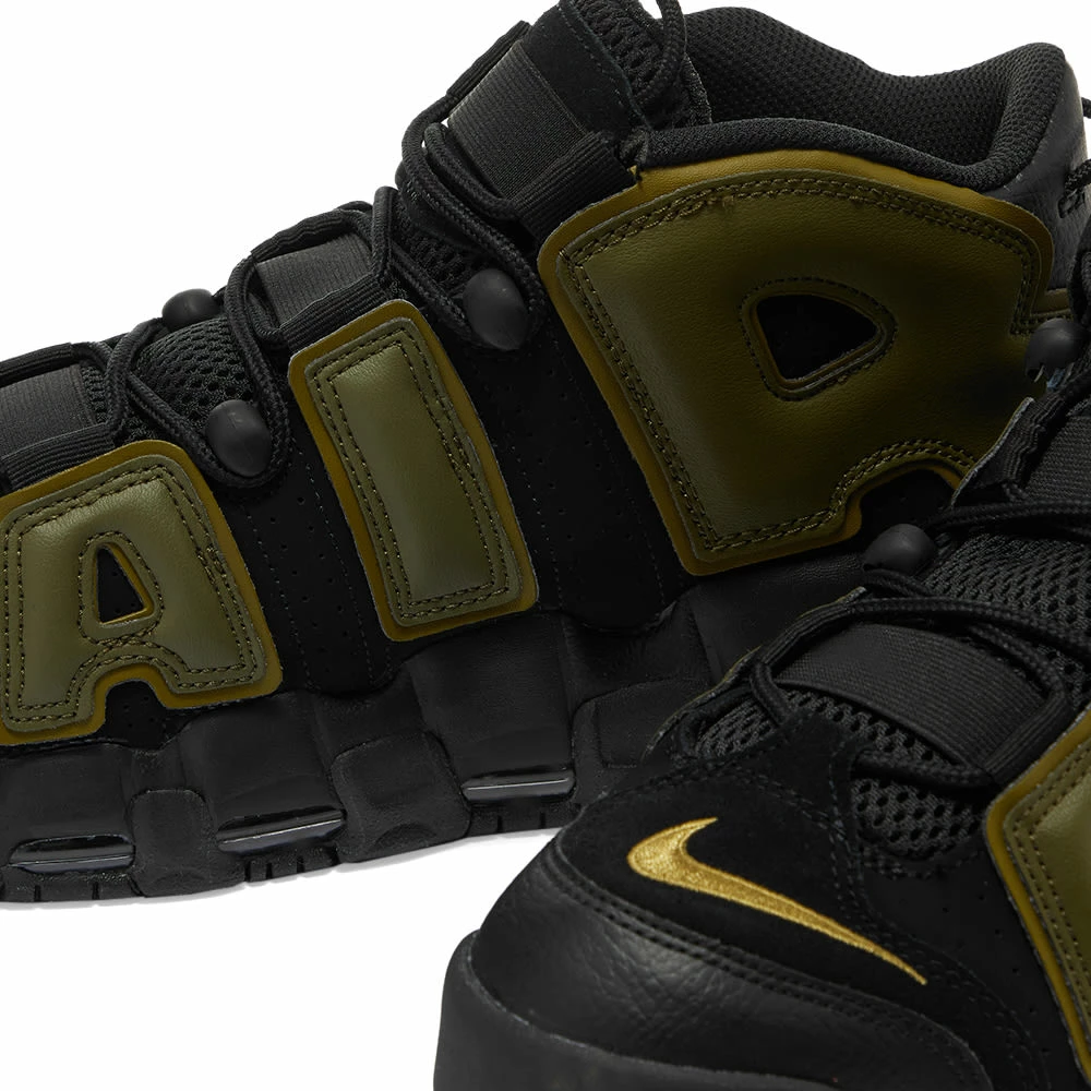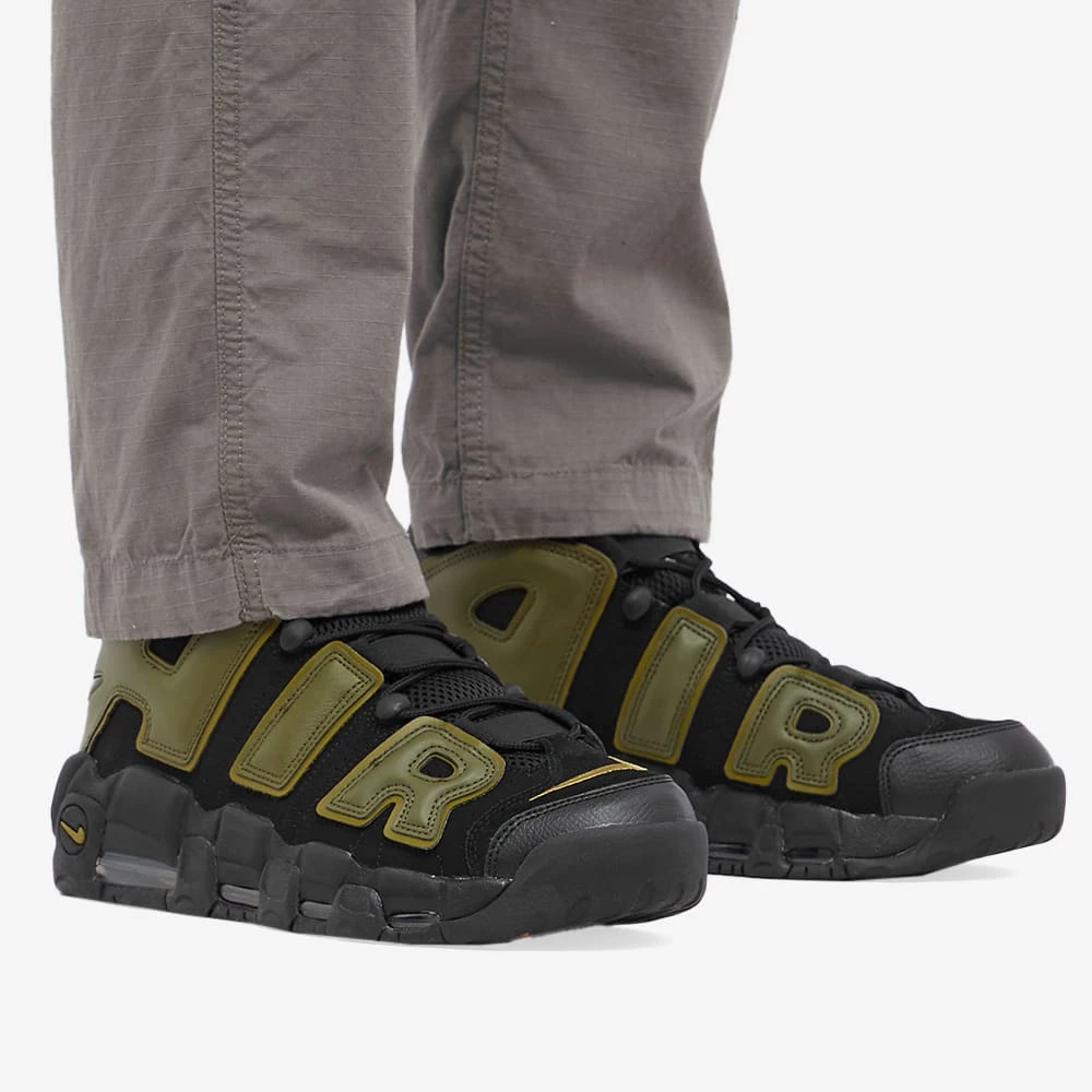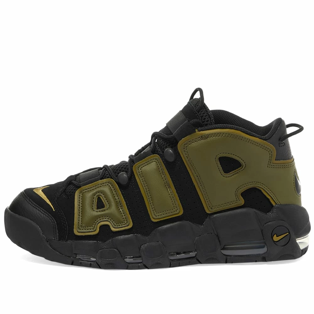 The summer of 1996 is re-lived with the return of Nike’s Air More Uptempo sneaker. Crafted from tumbled black leather with durable mesh underlays, this pair is accented by militant green ‘AIR’ branding across the sidewalls. Underfoot, the styles signature visible air units promises responsive cushioning whether you’re pushing it to the limit on the court or simply strolling the city streets.