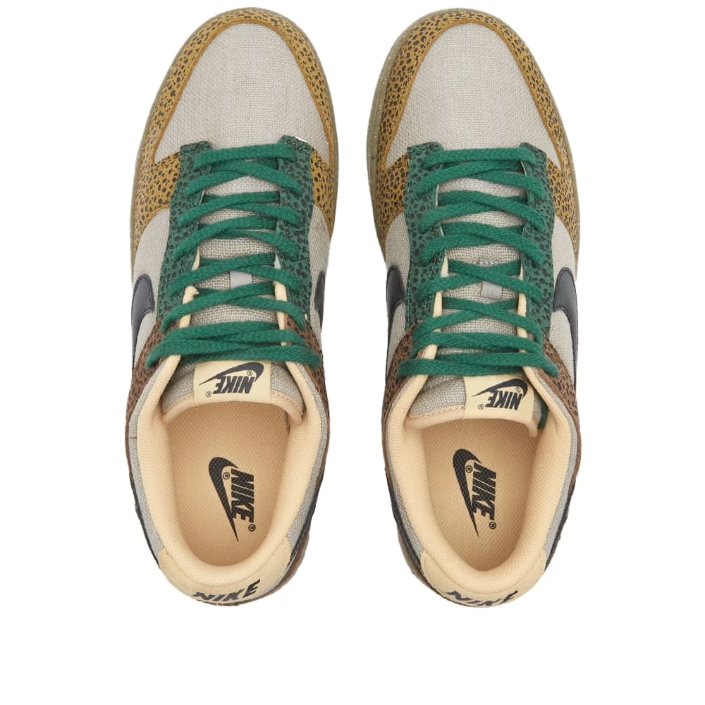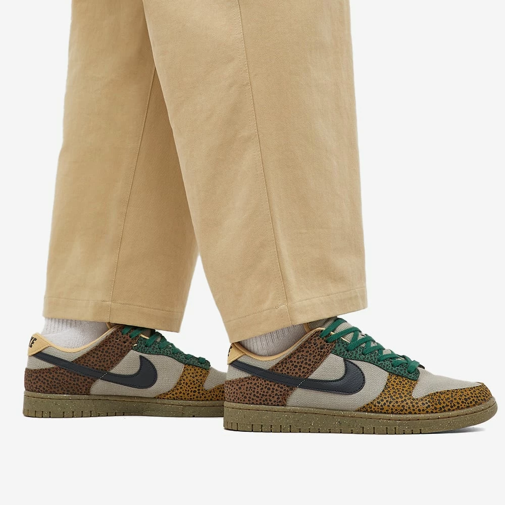 Continuing a theme that dates back to the early 2000’s, this season Nike releases yet another wild rendition of its signature Dunk Low silhouette. Dressed in an earth-toned colourway with safari-print overlays – the uppers are constructed from hemp mesh, leather and suede, with a speckled rubber sole unit providing optimal support from below.