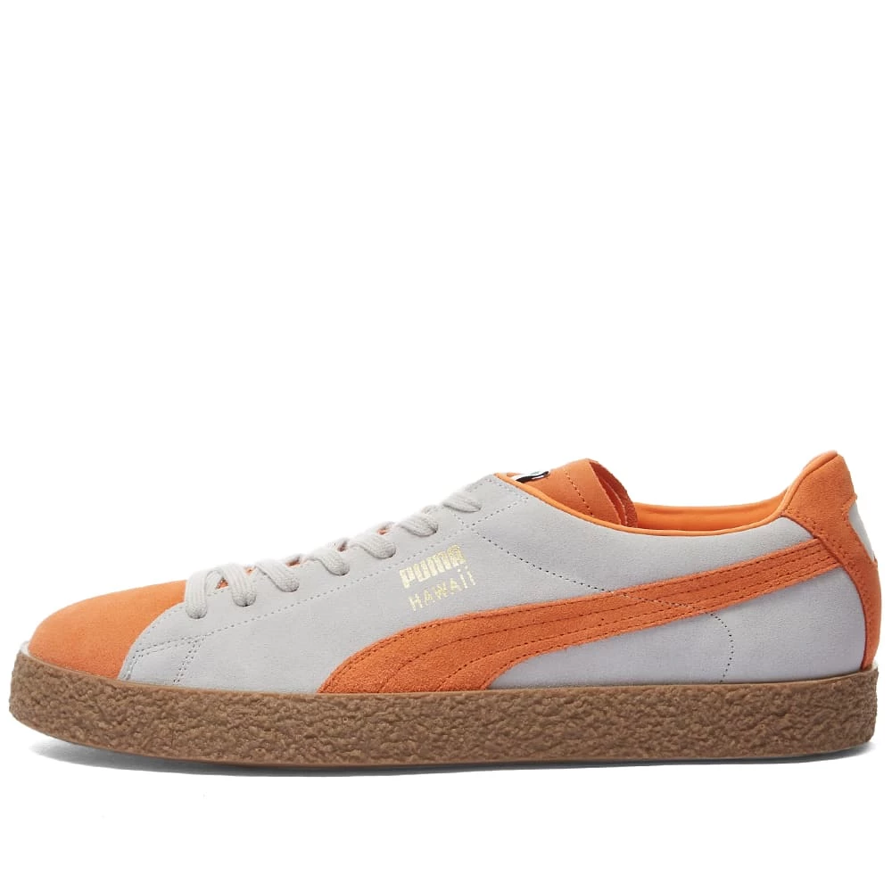 A terrace icon, Puma first released the Hawaii sneaker in 1988. Now, it returns in all its vintage glory with a bold twist. The soft suede uppers sport a contrasting grey and orange design, while the textured rubber cupsole adds some stylish dimension. Of course, gold foil branding completes the sought-after retro look.