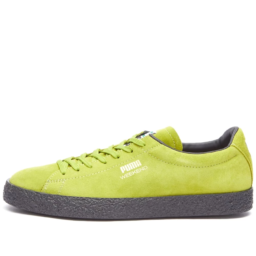 Puma takes its ‘70s terrace icon and gives it a statement refresh. With no formstrip and no frills, the Weekend sneaker is just as it was, except this pair sport apple green suede uppers and a contrasting black outsole. As always, signature gold foil branding finishes off the vibrant look.