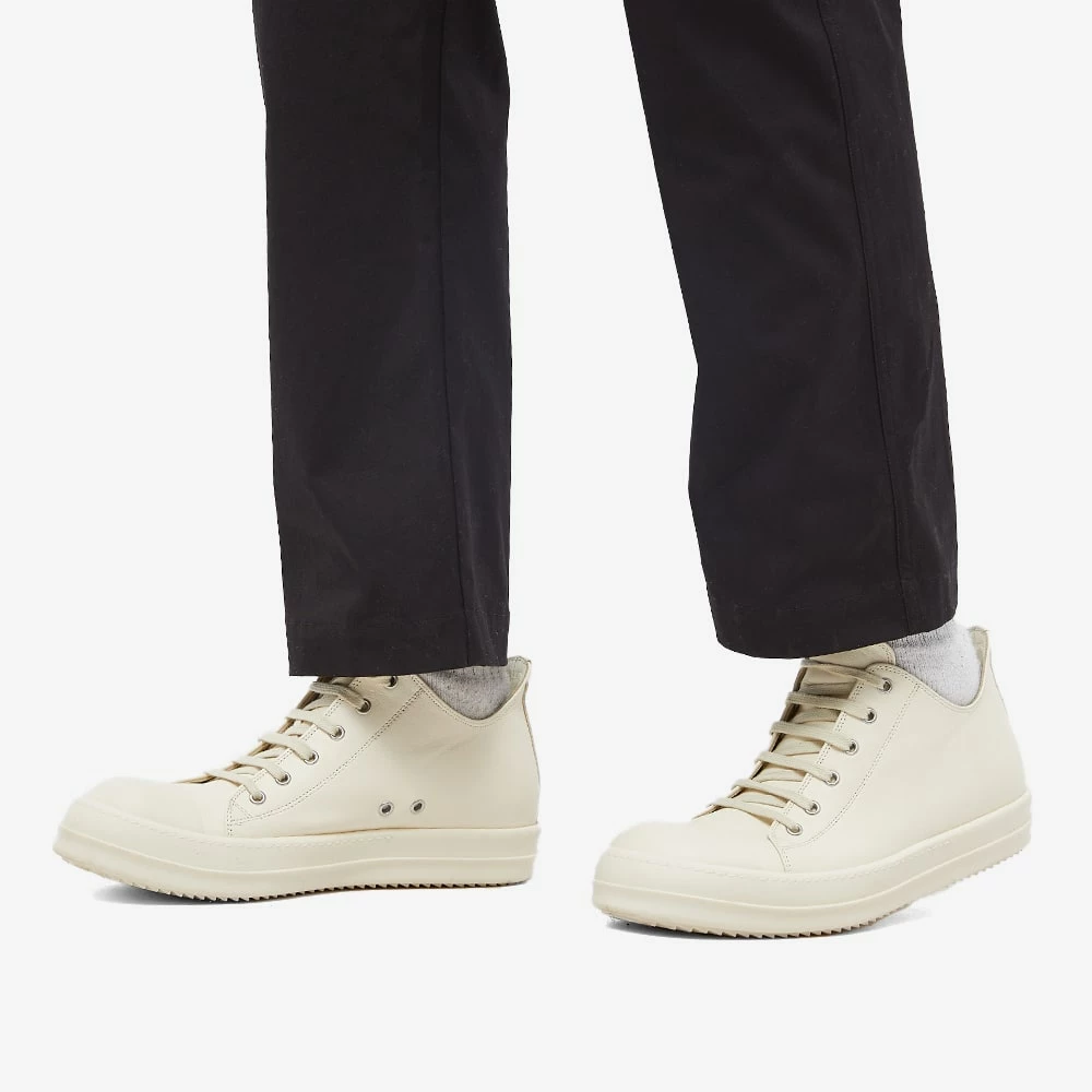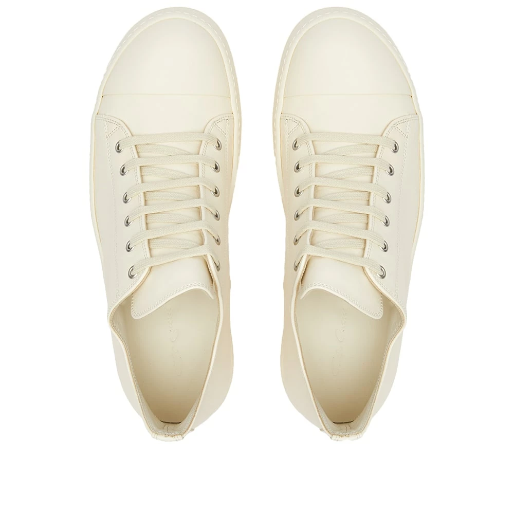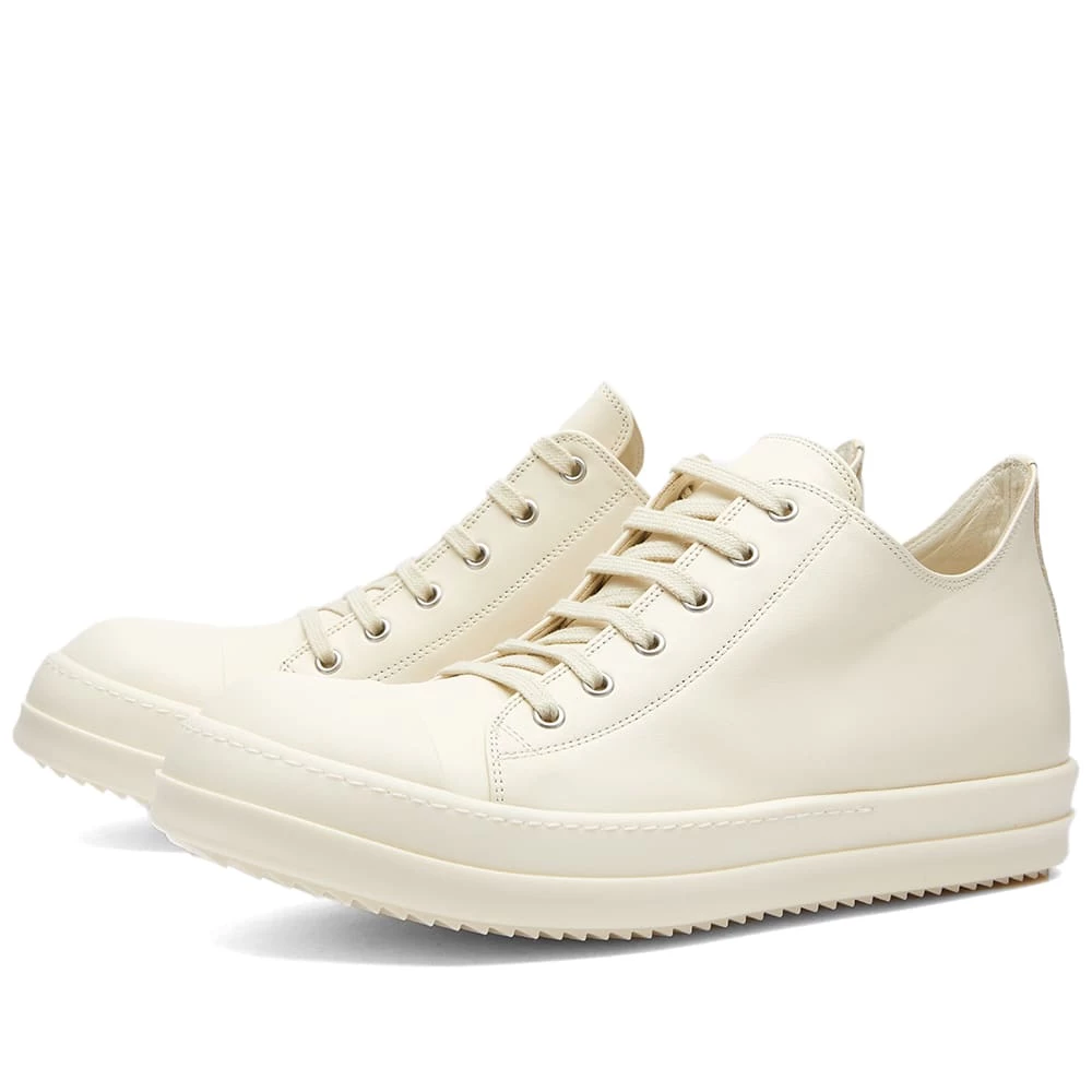 Communicating the chunky and attitude-packed aesthetic of Rick Owens’ namesake brand, this milk pair of low sneakers are made with a smooth leather upper and a thick rubber outsole which features a jagged base to create a rock edge. The toe of the sneaker snakes up skywards to create a sneaker silhouette like no other!
