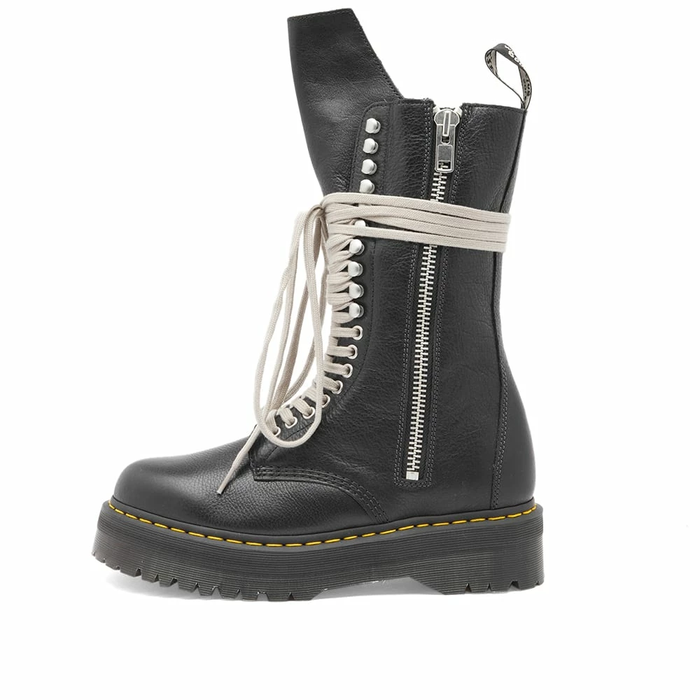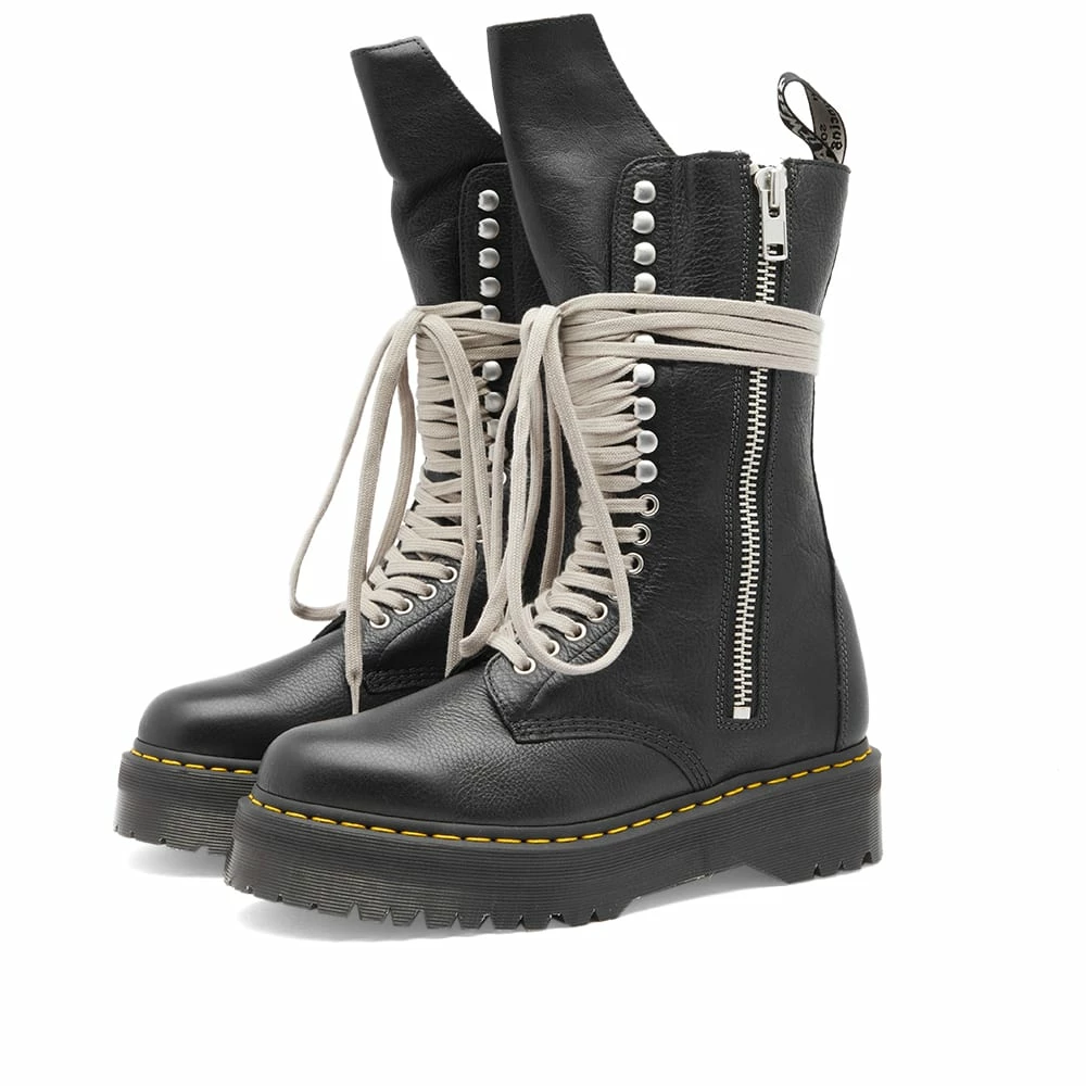 Subculture icon Dr Martens has teamed up with American-born, Paris-based designer Rick Owens to create the 1918 Quad Sole Calf Length Boots. These 18-eye boots are inspired by the ‘90s grunge renaissance, its spirit of non-conformity and its deconstructed, binary-defying styles. The boots feature an exaggerated geometric tongue, elongated laces and, of course, Dr Martens’ signature yellow stitching.