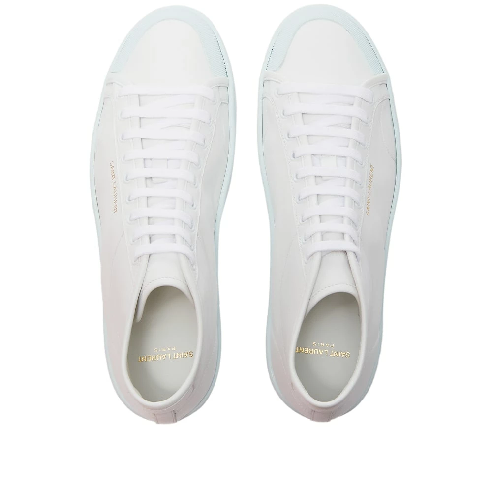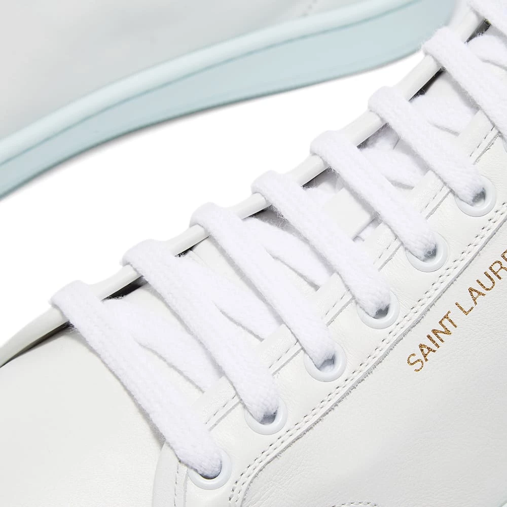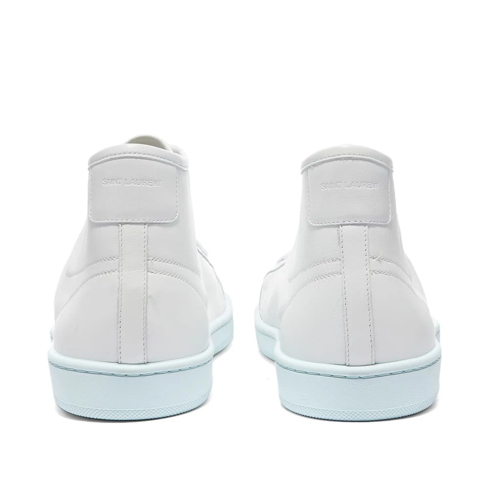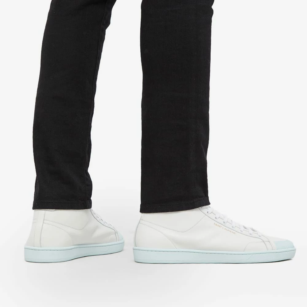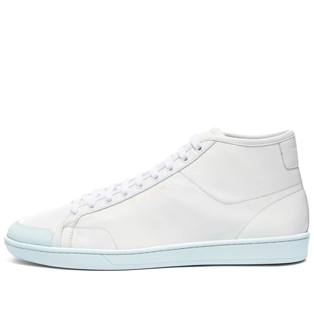 Saint Laurent delivers this premium pair of white sneakers that make for an effortlessly luxe addition to your everyday line-up. Expertly crafted in Italy, the super-soft leather sits atop a pastel blue rubber outsole – promising optimal style and comfort. To finish, the mid-top pair are signed off with gold-toned branding adorning its sidewalls.
