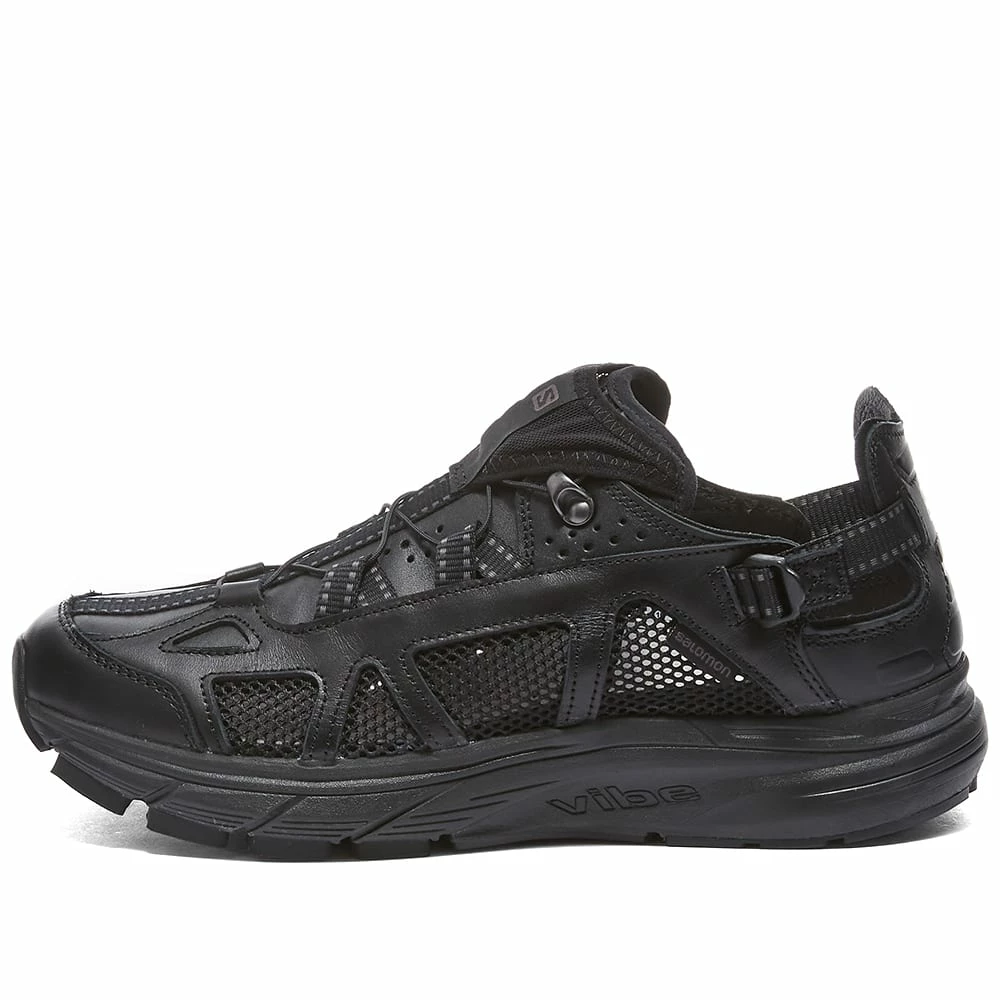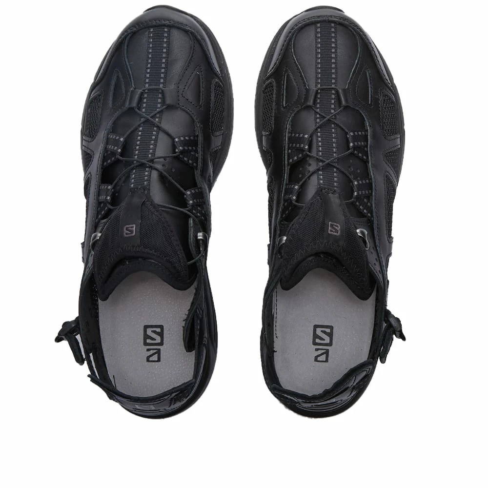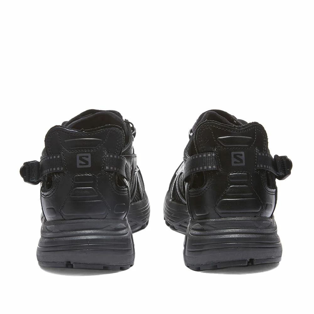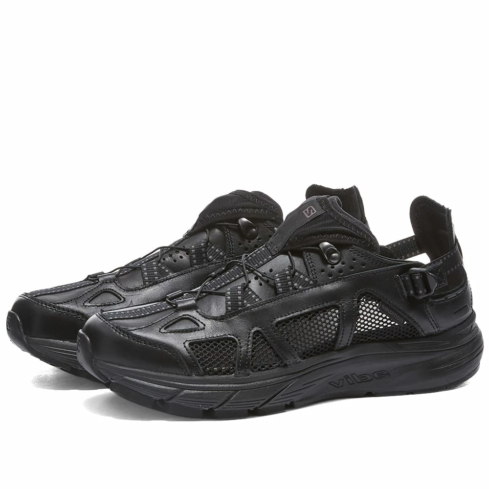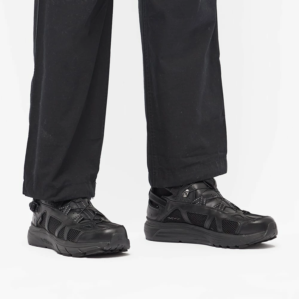 Designed for everyday adventures, Salomon presents this lightweight and technical combination of a sandal and cushioned sneaker. Its luxe leather uppers feature breathable mesh detailing and offer ultimate functionality with its elasticated fasten detailing that effortlessly collapses to transition the shoe into a trendy slip-on mule. The classic-black, hybrid pair, accented with matching black trims and a rubber sole, guarantee unrivalled style and comfort – on or off the rocky terrain.