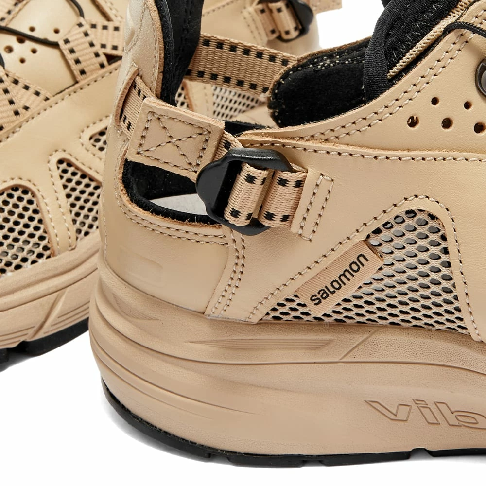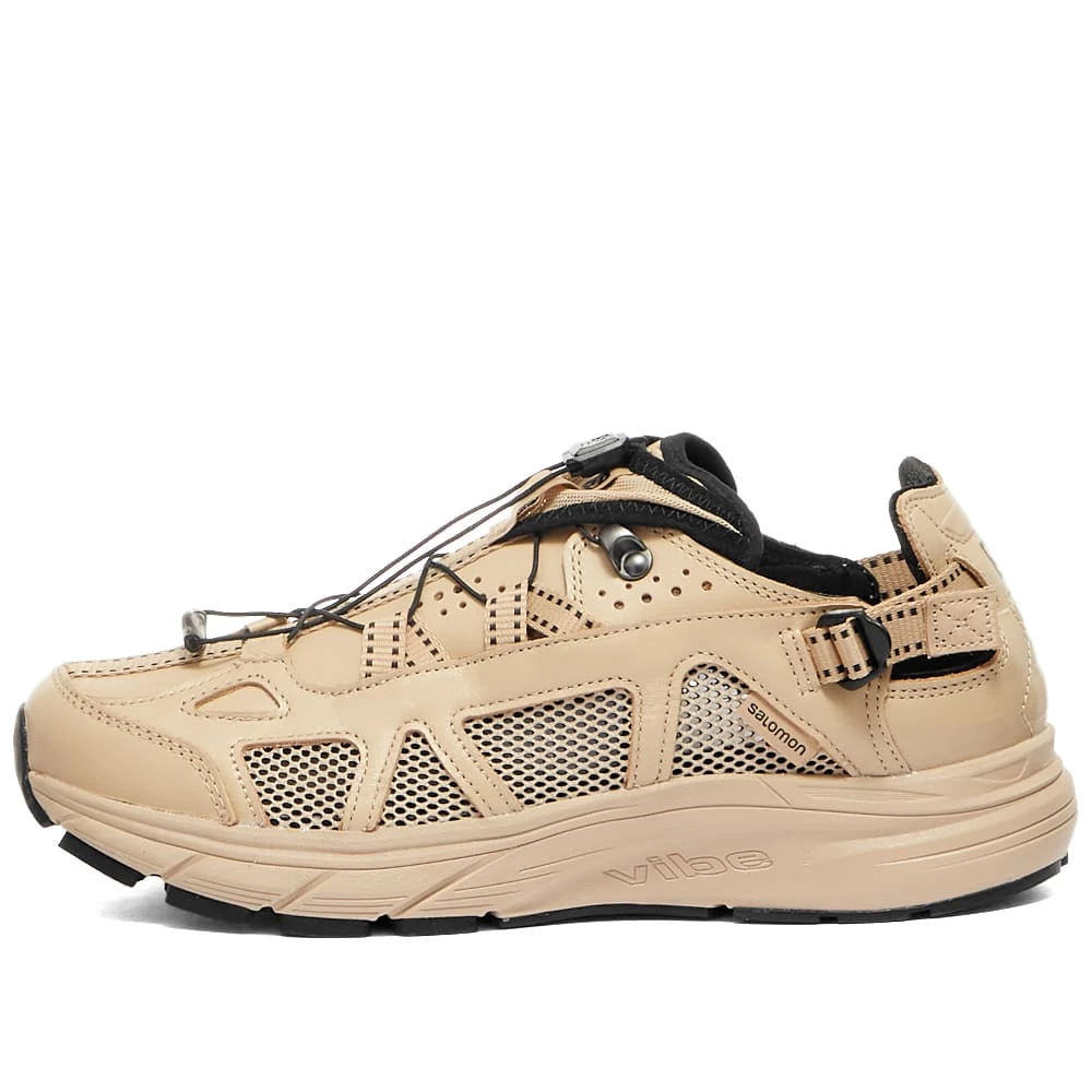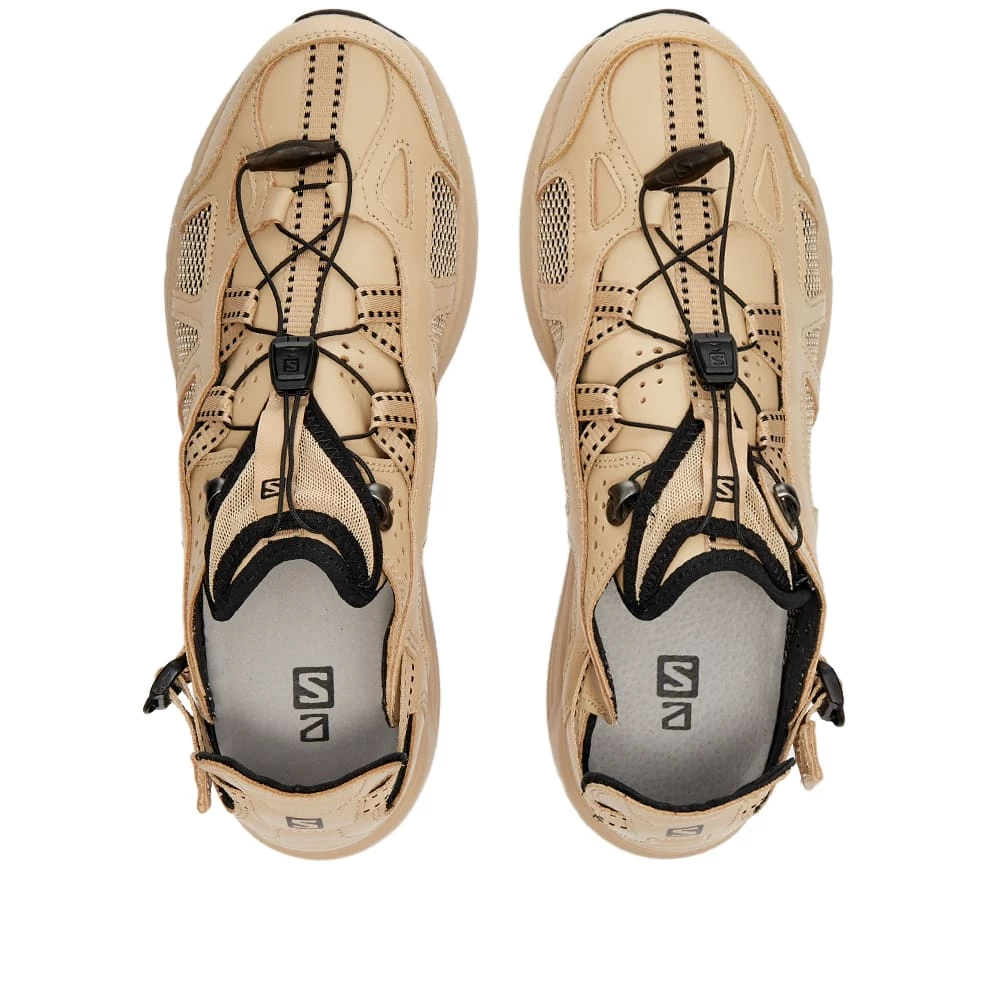 Designed for everyday adventures, Salomon presents this lightweight and technical combination of a sandal and cushioned sneaker. Its luxe leather uppers feature breathable mesh detailing and offer ultimate functionality with its elasticated fasten detailing that effortlessly collapses to transition the shoe into a trendy slip-on mule. The neutral-toned, hybrid pair, accented with black trims and a rubber sole, guarantee unrivalled style and comfort – on or off the rocky terrain.