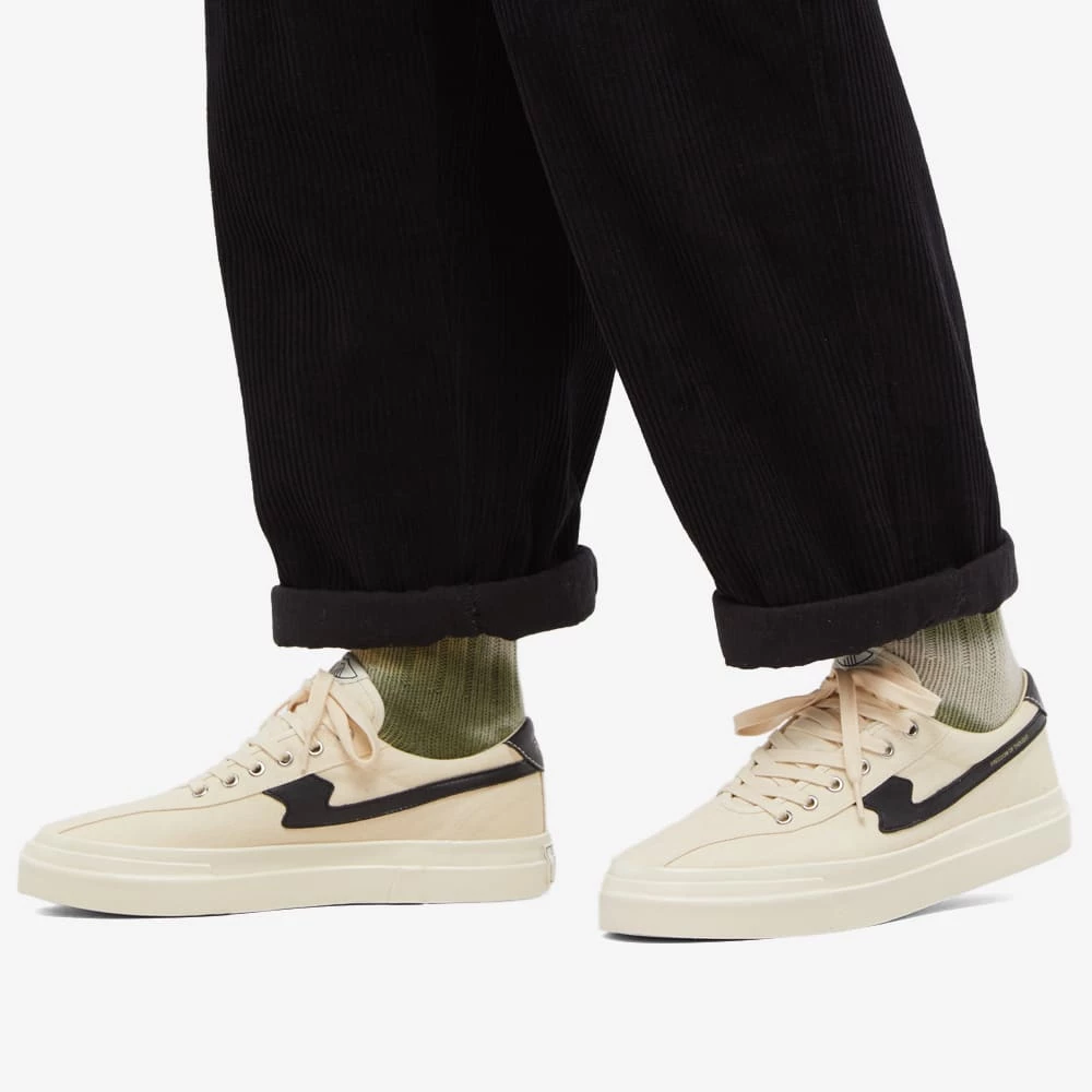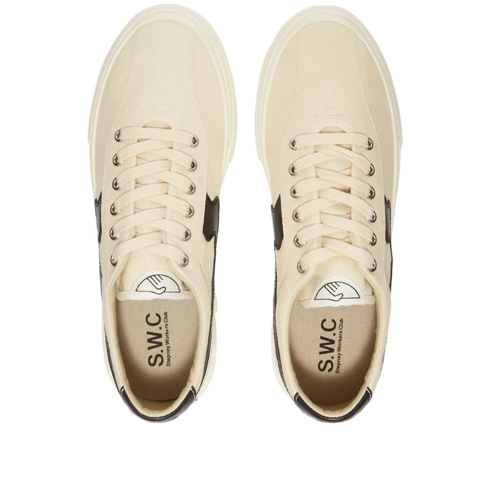 London-based label Stepney Workers Club reimagines its signature Dellow S-Strike sneaker with versatile cotton canvas uppers. Sat atop a cushioned rubber sole unit, this iteration is detailed with a contrasting ‘S’ at the sidewall and the brand’s signature gold foil overlays.